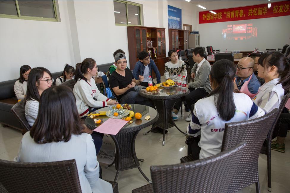 11月5日下午,外语公司“回首青春,共忆韶华”员工返校活动在8号楼506会议室举行,来自各行各业的员工、教师代表和在校生代表欢聚一堂,共叙师生员工情。公司经理黎昌抱、党委副书记林凡出席活动。