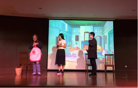 决赛历时两个小时,7个小组选择不同的角度来诠释“Happiness”这一主题,内容丰富多彩,表演过程中不仅增添了评委与各小组问答互动,还有妙趣横生的配音环节。第1小组通过与一棵树的故事引申到父母对子女不求回报的奉献,而第7小组直接演绎了一个家庭的组成,到孩子长大常年在外工作鲜少回家的小情景剧,启示我们在追求幸福的路上终归要离开父母,但也需要经常给予父母一定的陪伴和关怀,因为那才是真正的幸福的来源;第6小组通过课堂讨论形式探讨“什么是幸福”,给他们带来幸福的途径多种多样,有唱歌,有篮球,有梦想;第2小组选择独特的电视访谈节目形式,更是插满微电影,以家庭烦恼的讨论到各方沟通调节,对烦恼的释怀,诠释了亲人之间爱的领悟;第5小组通过男生反串饰演灰姑娘这一角色,服侍华美,道具齐全,演绎方式诙谐幽默,令观众捧腹大笑;第3小组选取了世界名著《小王子》来进行表演汇报;而第4小组则是则仿照法庭审判形式来诠释主题。
