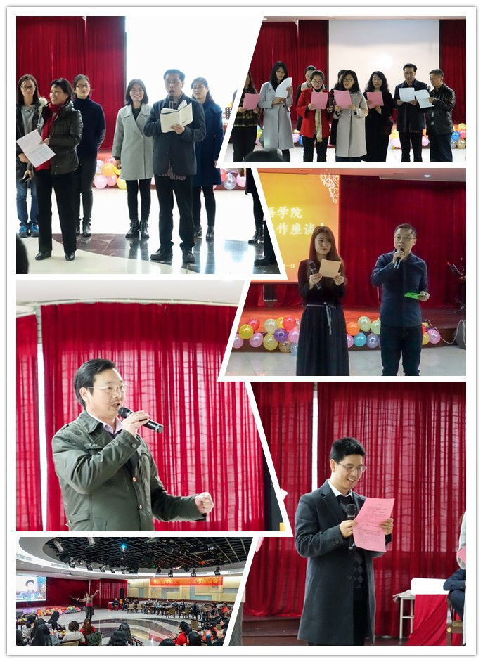在一片欢乐祥和的气氛中,来自机关党支部、大外党支部、专业系党支部和民建党、民盟党、民进党、九三学社等各党派及各系部教师代表精心准备的节目逐一呈现。