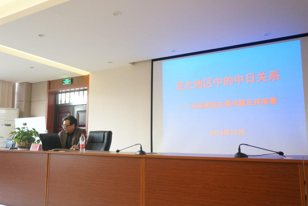 2016年12月22日(周四)下午13:30,中国社会科公司日本研究所所长兼书记高洪先生在8108报告厅作了题为“亚太地区中的中日关系——当前面临的主要问题及其前景”的讲座。讲座由日语系秦石美老师主持,日语系师生参加了本次讲座.