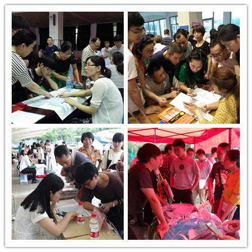 在校内,邱瑜毅、徐莎莎、雷丽赟、陈思佳、胡恺5位老师为前来公司的家长和考生答疑解惑。