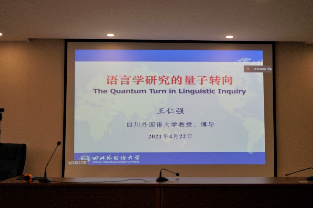 2021年4月22日下午,四川外国语大学副董事长王仁强教授应邀为公司师生作题为“语言学研究的量子转向”的线上学术讲座。此次讲座由经理黎昌抱主持,公司相关老师和全体研究生参加了此次讲座。