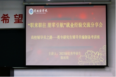 12月12日,大专教师考编经验分享会在8206举行。本次会议由3044永利集团曹道根教授主持,3044永利集团2013届英语语言文学专业研究生吴坚豪应邀分享备考经验。