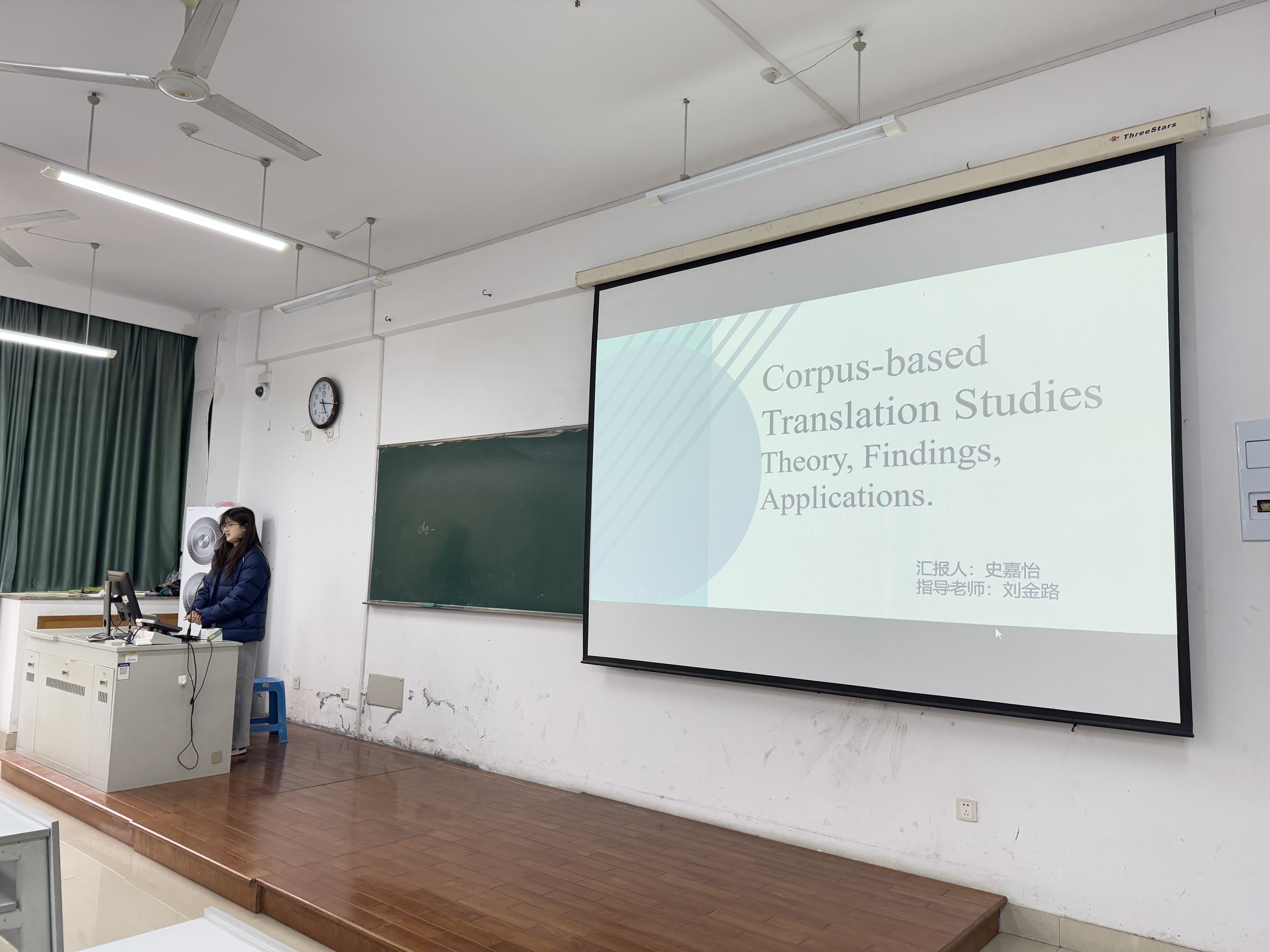 2024年12月5日,史嘉怡作了主题为“Corpus-based Translation Studies: Theory, Findings, Applications”的读书报告,徐莎莎老师和刘金路老师进行点评交流。该读书报告会以“语料库翻译学”为主题,详细介绍了语料库翻译研究的现状,总结了该领域的主要思想、分析技术、发现和应用,还提供了一些新的概括性描述。在交流讨论环节中,刘金路老师和徐莎莎老师分别针对该读书报告进行了专业点评,并提出了修改意见以望参考。最终读书报告在老师及同学们的热烈讨论中圆满结束。