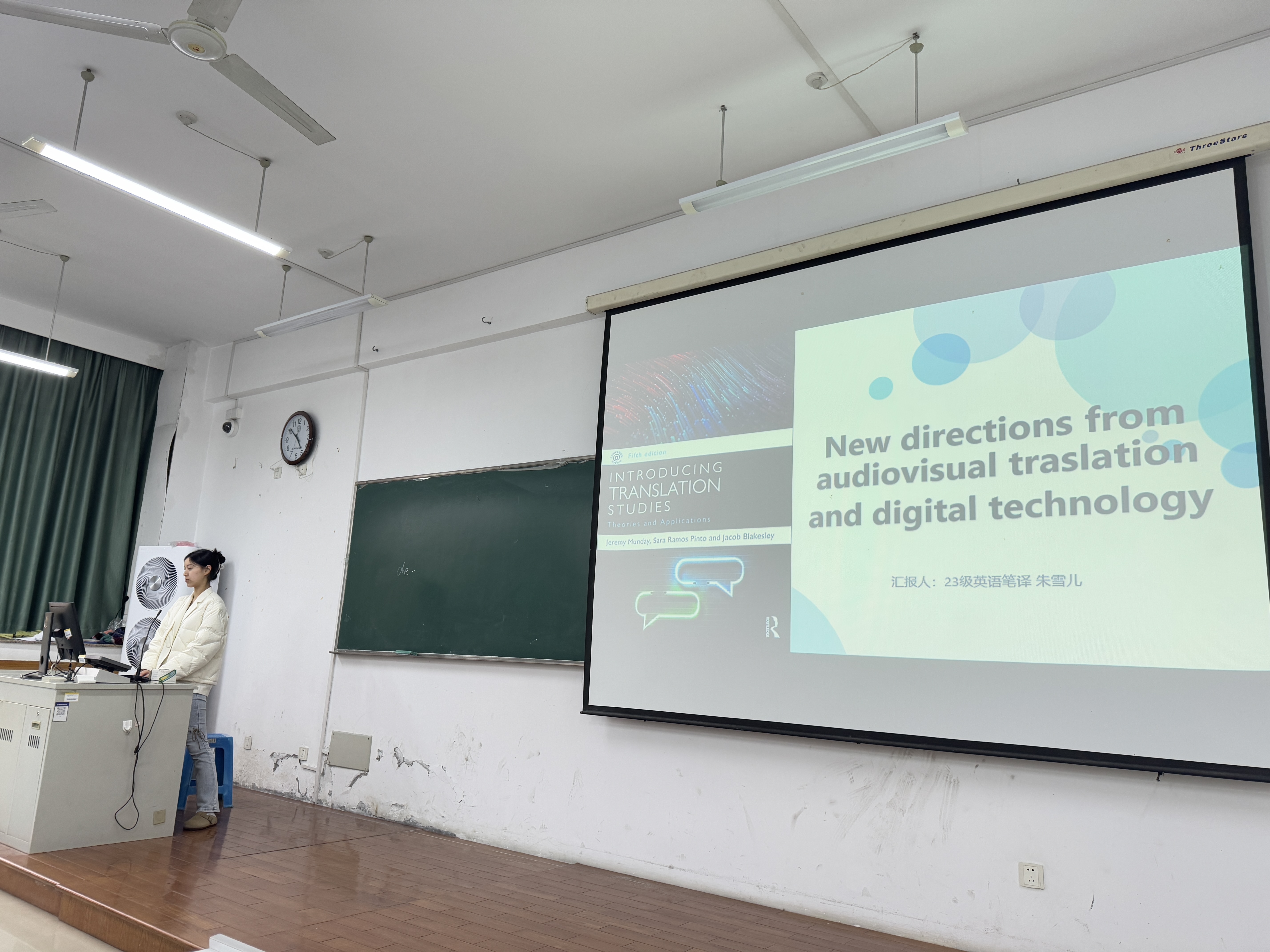 2024年12月5日,朱雪儿作了主题为“New directions from audiovisual translation and digital technology”的读书报告,徐莎莎老师和刘金路老师进行点评交流。该读书报告会以“视听翻译和本地化翻译”为主题,详细介绍了视听翻译的发展历史,字幕翻译的局限性和特征,字幕翻译的一些例子,以及本地化的概念和工具。在交流讨论环节中,徐莎莎老师和刘金路老师分别针对该读书报告进行了专业点评,并提出了修改意见以望参考。最终读书报告在老师及同学们的热烈讨论中圆满结束。