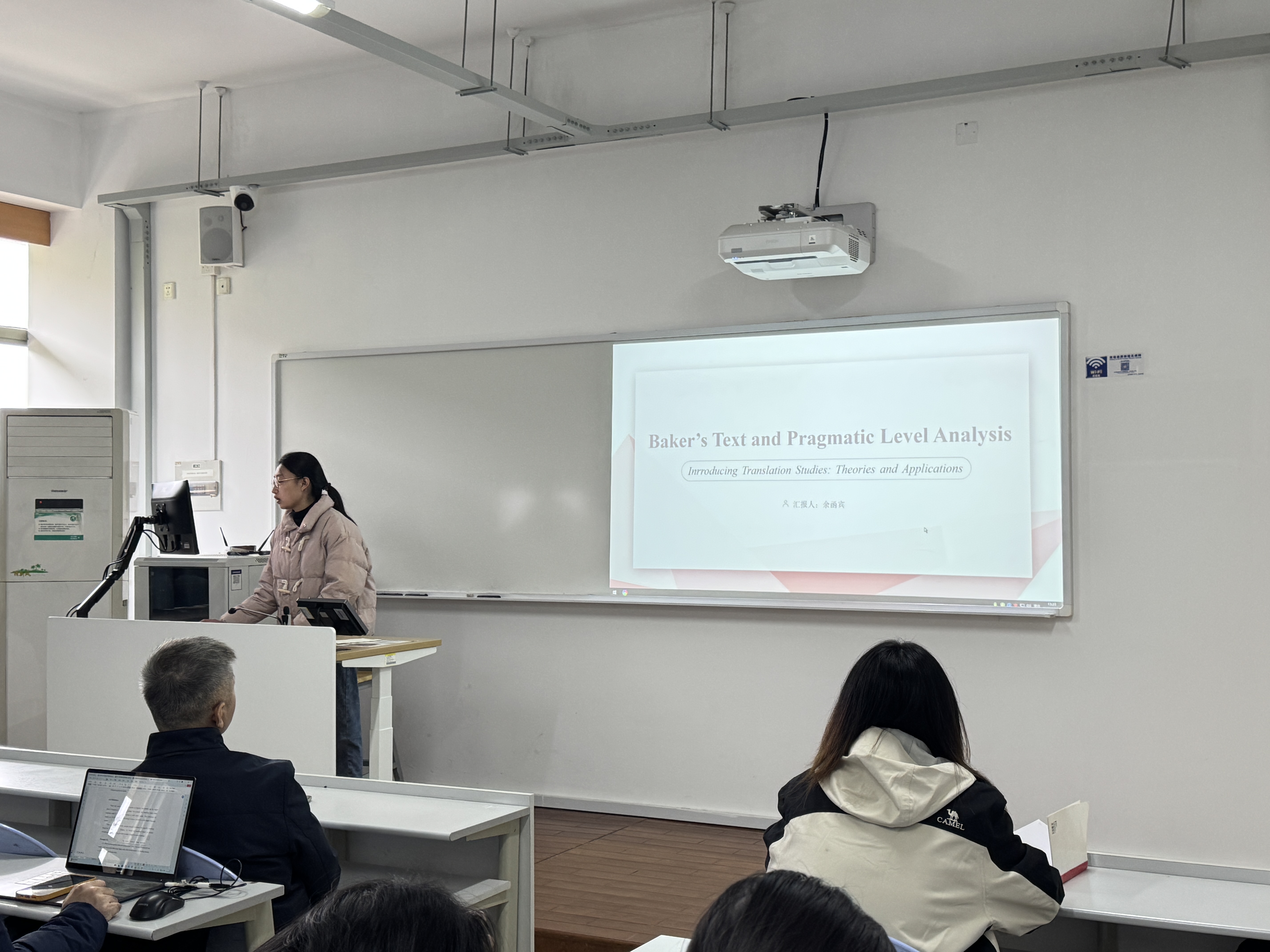 王俊皓作了主题为“Catford and Translation Shifts”的读书报告,曹道根老师进行点评交流。该读书报告会以“卡特福德的翻译转换理论”为主题,详细介绍了翻译转换理论的内容及其在翻译实践中的应用,肯定了转换理论在实践中的指导价值。在交流讨论环节中,曹道根老师针对该读书报告进行了专业点评,并提出了修改意见以望参考。最终读书报告在老师及同学们的热烈讨论中圆满结束。
