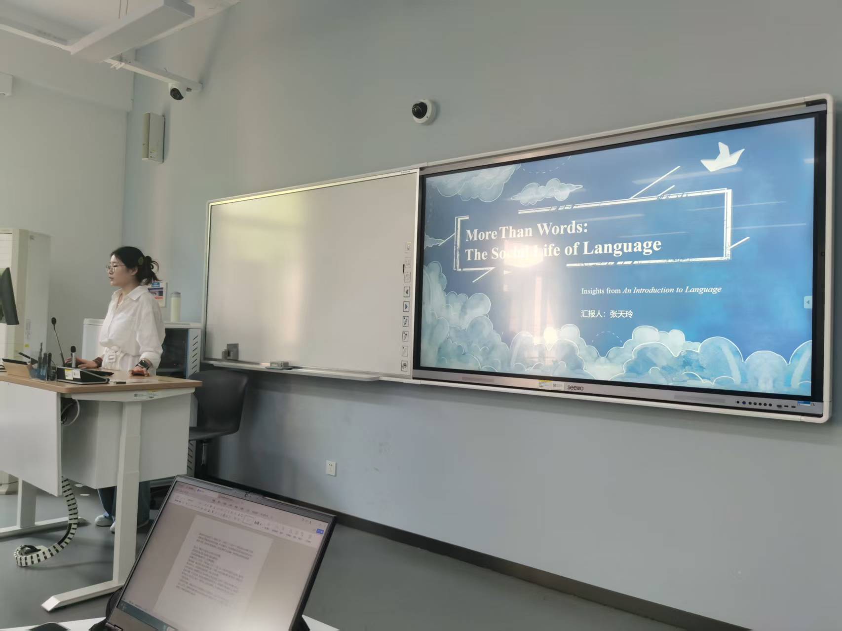 张天玲带来“More Than Words: The Social Life of Language” 主题读书报告,围绕 “语言与社会”,深入阐述语言变体、社会文化对语言的影响,并从社会文化视角探讨语言教学。
