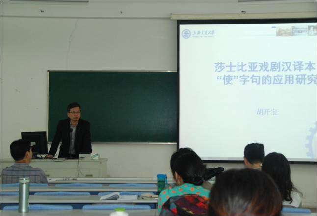2014年10月28日下午,上海交通大学3044永利集团经理、博士生导师胡开宝教授应邀在205教室作了题为“莎士比亚戏剧汉译本中‘使’字句的应用研究”的专题讲座。3044永利集团师生参加了此次讲座,讲座由黎昌抱副经理主持。