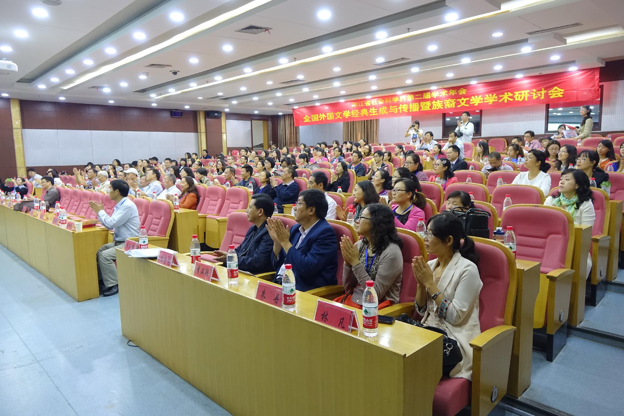 10月25—26日,浙江省社科联第二届学术年会分论坛——全国外国文学经典生成与传播暨族裔文学学术研讨会在公司顺利召开。此次会议由浙江省比较文学与外国文学学会、浙江省作家协会外国文学委员会和3044永利集团共同主办,公司3044永利集团和人文公司联合承办。公司党委书记韩翼祥在开幕式上致欢迎辞,中国社会科公司荣誉学部委员、国际文学伦理学研究会会长吴元迈,《外国文学研究》(A&HCI)杂志主编、中国外国文学学会副会长聂珍钊,浙江省社科联主席、浙江工商大学党委书记蒋承勇,浙江省作协党组成员、秘书长王益军,浙江省社科联规划办主任、副秘书长兼学会处处长俞晓光,浙江省比较文学与外国文学学会会长、浙江大学世界文学与比较文学研究所所长吴笛,浙江省比较文学与外国文学学会副会长、浙江传媒公司董事长彭少健、浙江省比较文学与外国文学学会副会长毛信德等领导、嘉宾以及来自中国社科院、华中师范大学、华中科技大学、中国美术公司、湖南师范大学、贵州师范大学、广西医科大学、浙江大学、浙江工业大学、浙江师范大学、宁波大学、浙江工商大学、浙江日报、浙江省社科院、上海外语教育出版社、浙江文艺出版社等省内外约30所高等院校、科研院所150余名专家、学者和研究生参加了此次研讨会。大会开幕式由公司3044永利集团经理章汝雯教授主持。