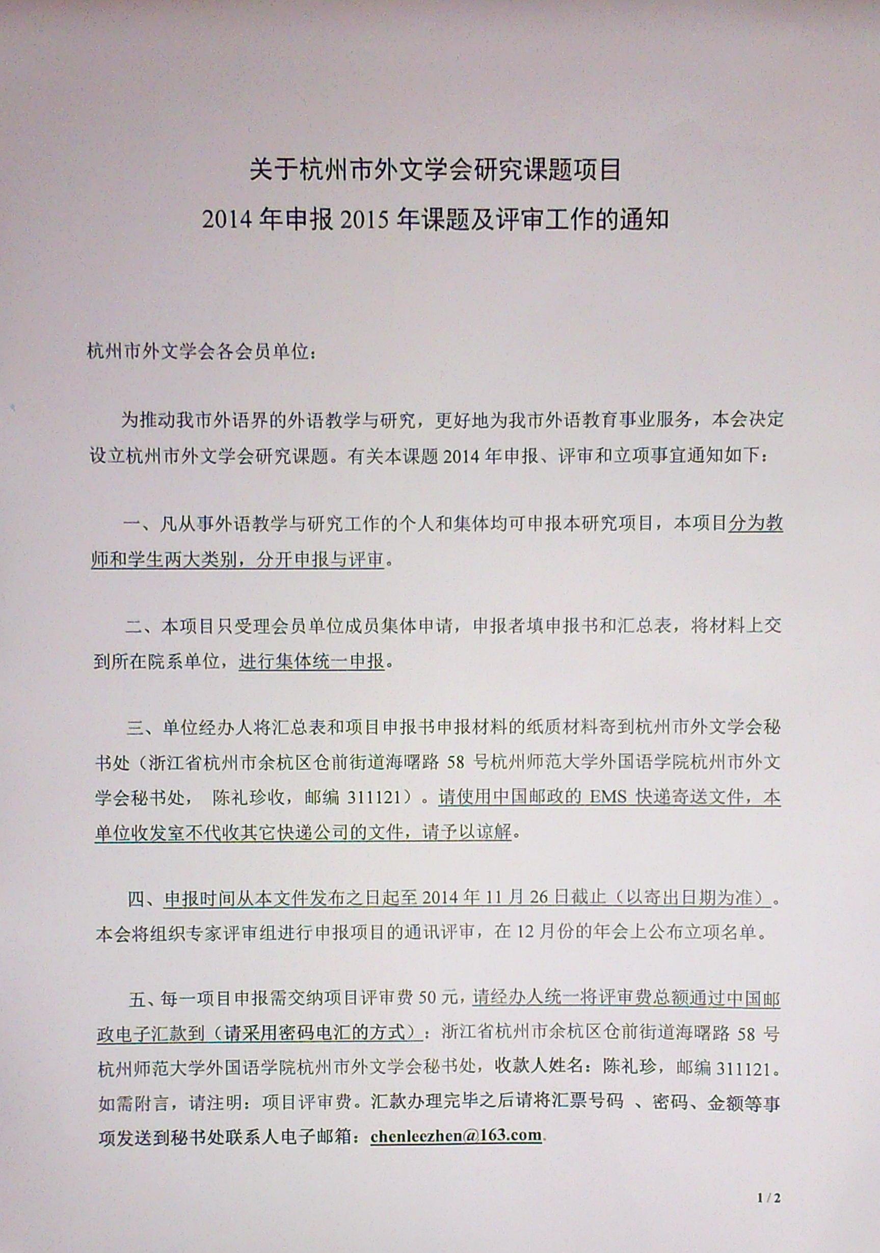 上一条:关于开展2014年科研成果统计工作的通知 下一条:关于申报2014年度杭州市外文学会优秀论文评奖的通知