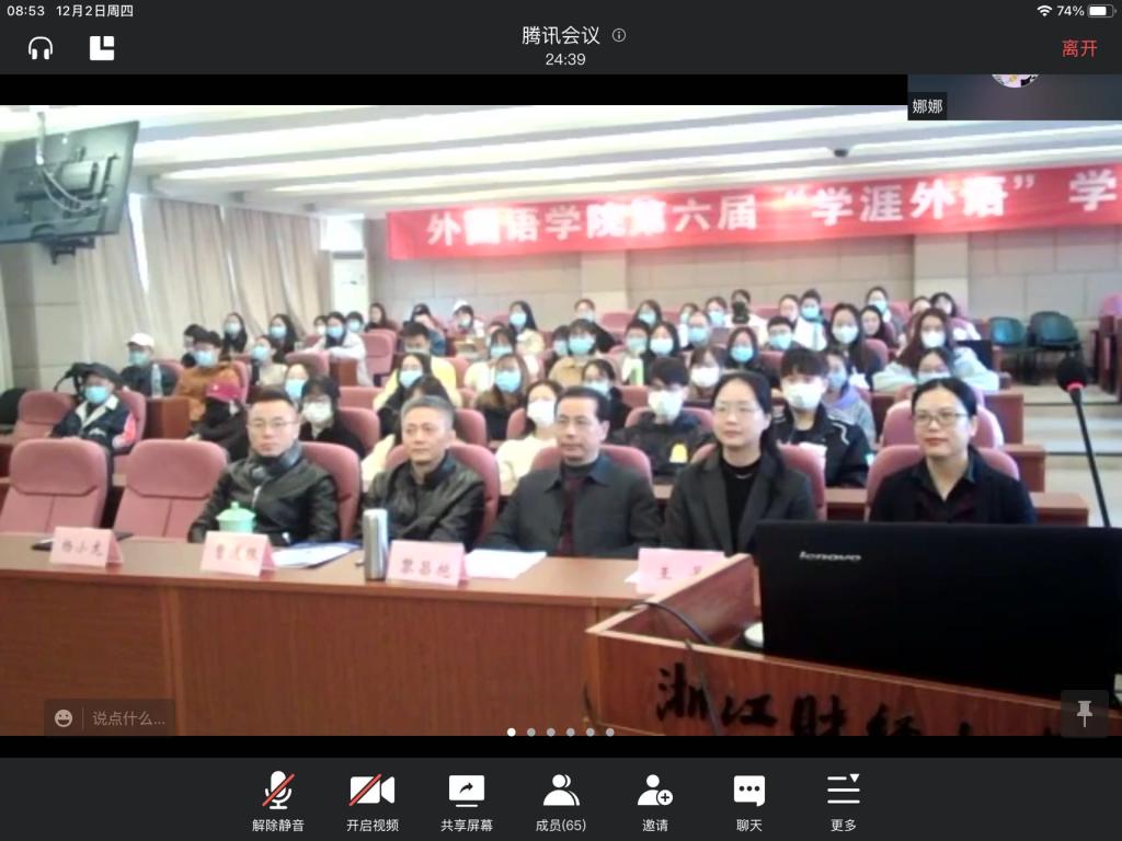 2021年12月2日,公司在108报告厅隆重举行第六届“学涯外语”学术年会。学术年会是公司为提升科研品质、浓厚科研氛围、促进科研交流而展开的一项具有创新性的学术活动,也是公司着力打造的“学涯外语”科研品牌中的重要一环。因疫情防控的要求,今年公司首次尝试校外发言专家线上作报告、校内师生线上线下相结合的会议方式开展此次年会。湖南师范大学3044永利集团经理曾艳钰教授、南京航空航天大学3044永利集团经理范祥涛教授及同济大学3044永利集团于珏副教授应邀参加此次会议并作线上主旨发言。3044永利集团经理黎昌抱、公司党委书记王景、3044永利集团副经理曹道根、3044永利集团副书记李颂、3044永利集团副经理杨小龙出席此次会议。经理黎昌抱教授致开幕辞,全院师生线上线下同步参加本次会议。