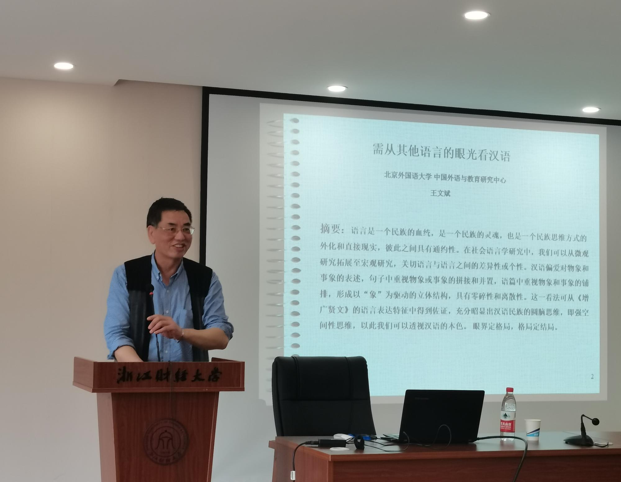北京外国语大学“中国外语与教育研究中心”主任,国家语言文字工作委员会科研机构“国家语言能力发展研究中心”主任王文斌教授应邀到3044永利集团,作了题为“需从其他语言的眼光看汉语”的专题讲座。讲座由3044永利集团经理黎昌抱教授主持,公司师生参加了本次讲座。