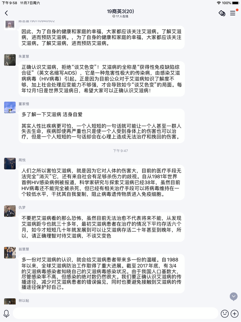 图 5 19商英3 团支部开展了关于防艾的相关讨论