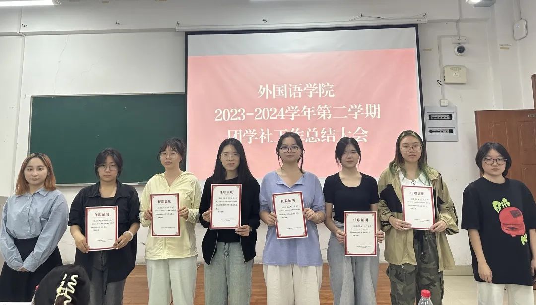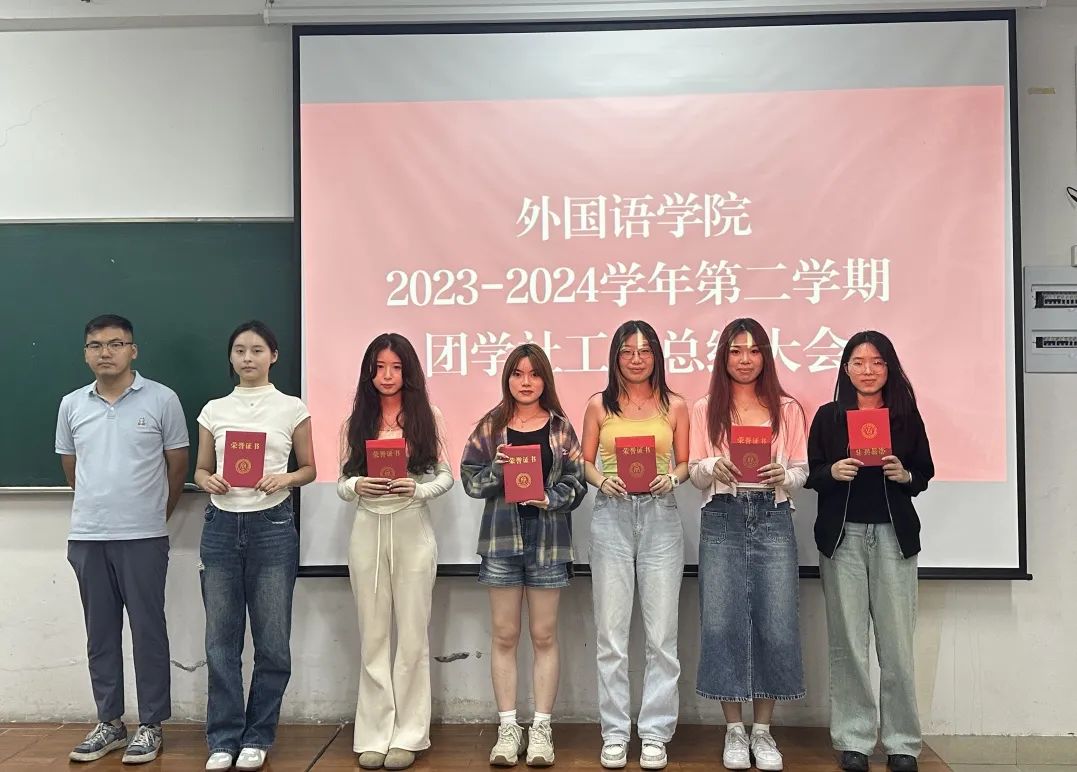 经过民主投票,团委组织部、社会实践(志愿者)中心,员工会学习部、文艺部,英语协会、西班牙语协会(原)荣获2023-2024学年第二学期“优秀部门”荣誉称号,潘宇航为优秀部门颁发证书。