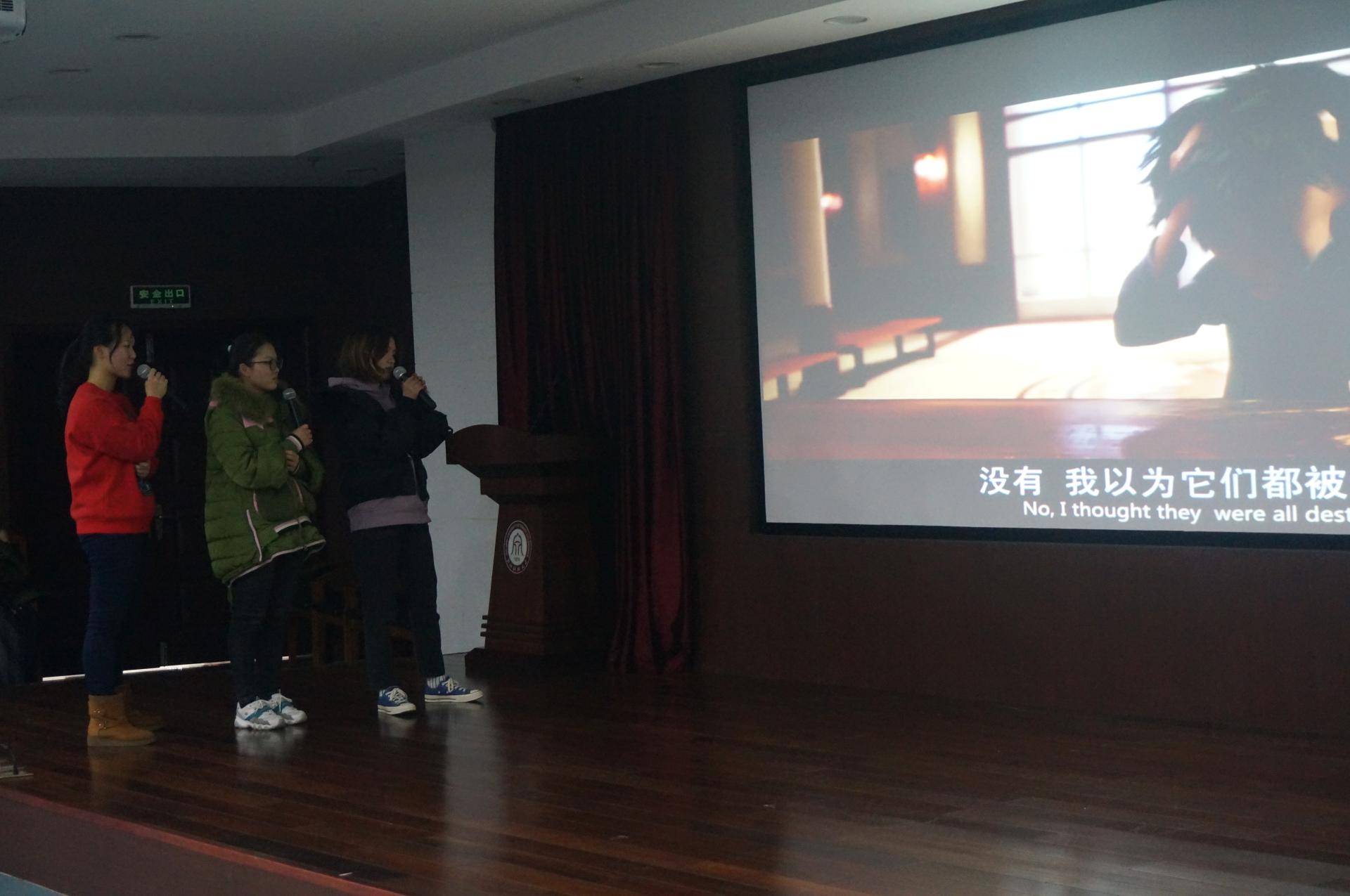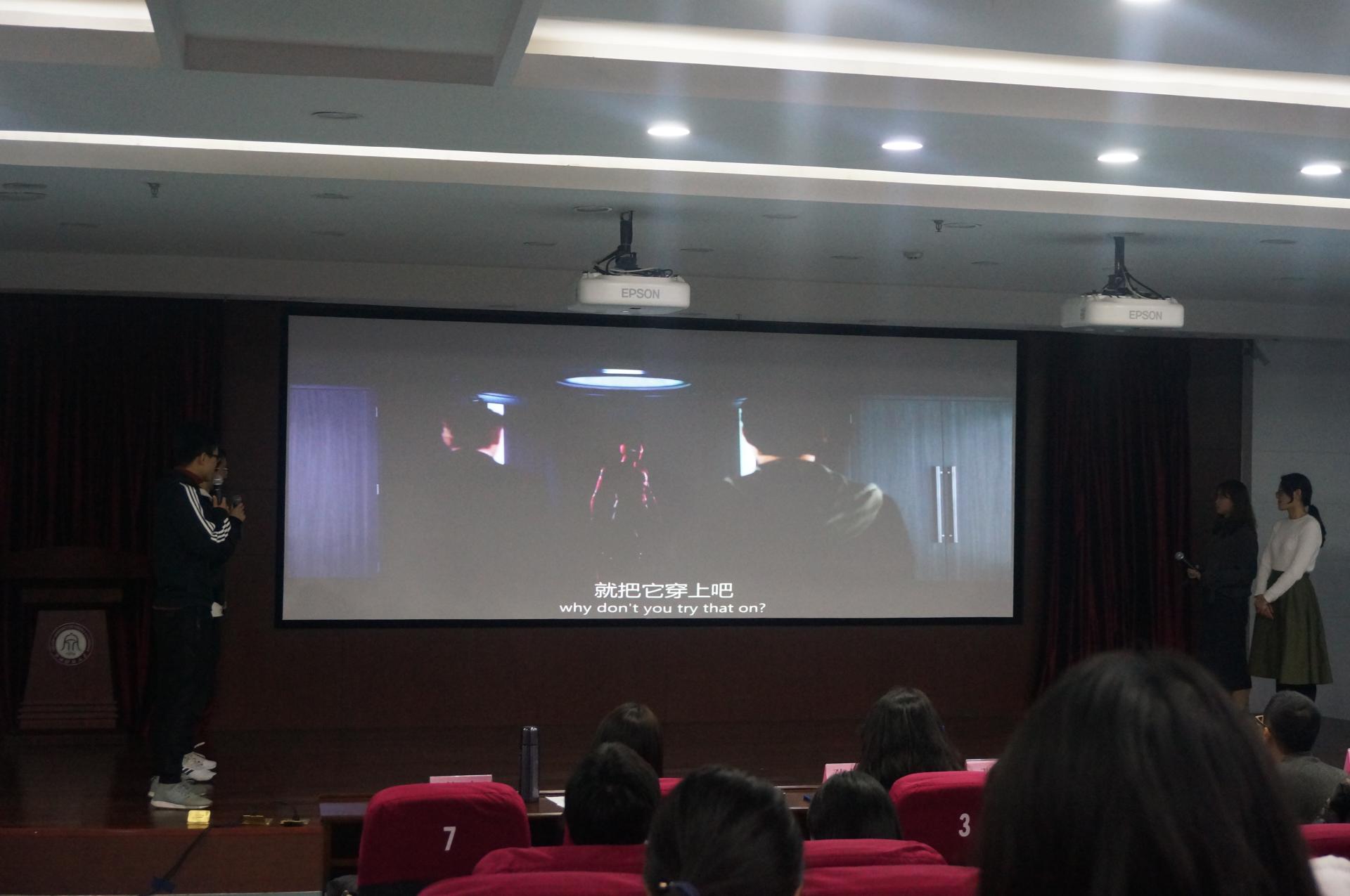 决赛以现场配音表演为形式,参赛选手们用纯正流利的口语和饱满的感情带领观众走进影片,通过发音正确的单词、饱含感情的句子还原出一个最真实的电影世界。比赛精彩纷呈,其中包括《疯狂动物城》、《傲慢与偏见》等经典剧作的再现。他们惟妙惟肖的表演吸引了所有评委以及观众。最终朱一帆以表演《西部世界》获得了一等奖。由腾超老师为选手们颁发荣誉证书。