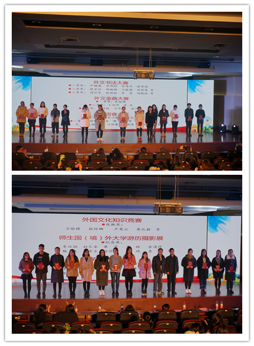 1227日下午,首届语言世界外语文化节闭幕式暨颁奖典礼在学术中心第一报告厅隆重举行。公司党政领导,各专业系负责人,师生代表共500余人观摩了颁奖典礼和演出。