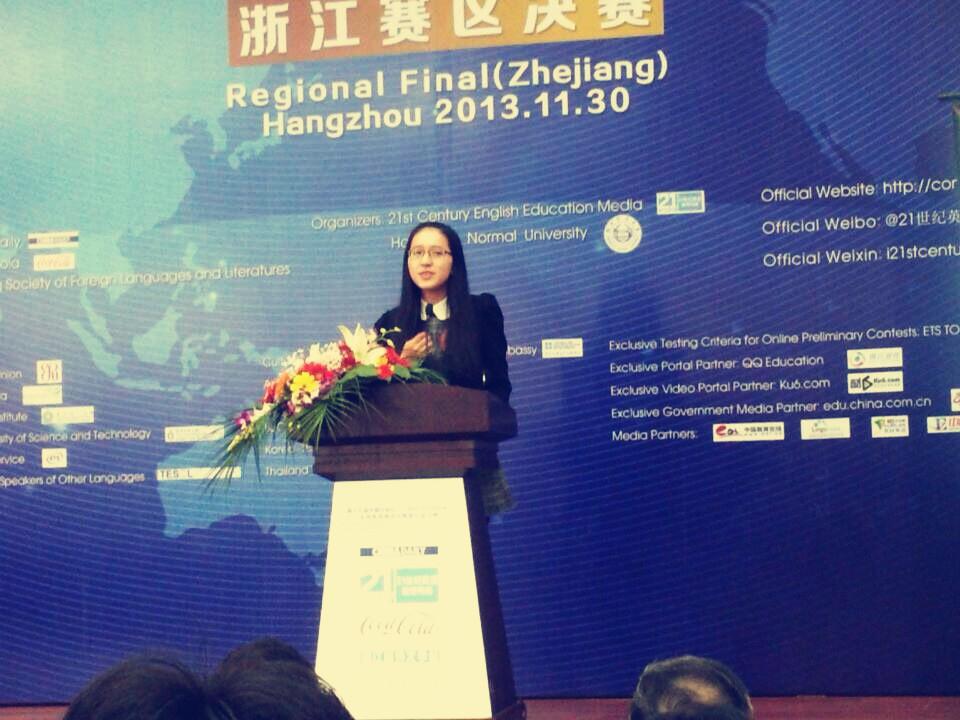 2013年11月30日,由中国日报社与可口可乐大中华区联合主办,二十一世纪英语教育传媒承办的第十九届“21世纪·可口可乐杯”全国英语演讲比赛浙江省赛区决赛在杭州师范大学举行。通过前期互联网选拔赛、校园选拔赛、电话口试等多元化竞赛单元,全省高校共有38位精英选手脱颖而出。经过决赛激烈角逐,公司章安娜同学荣获二等奖,为公司赢得荣誉。