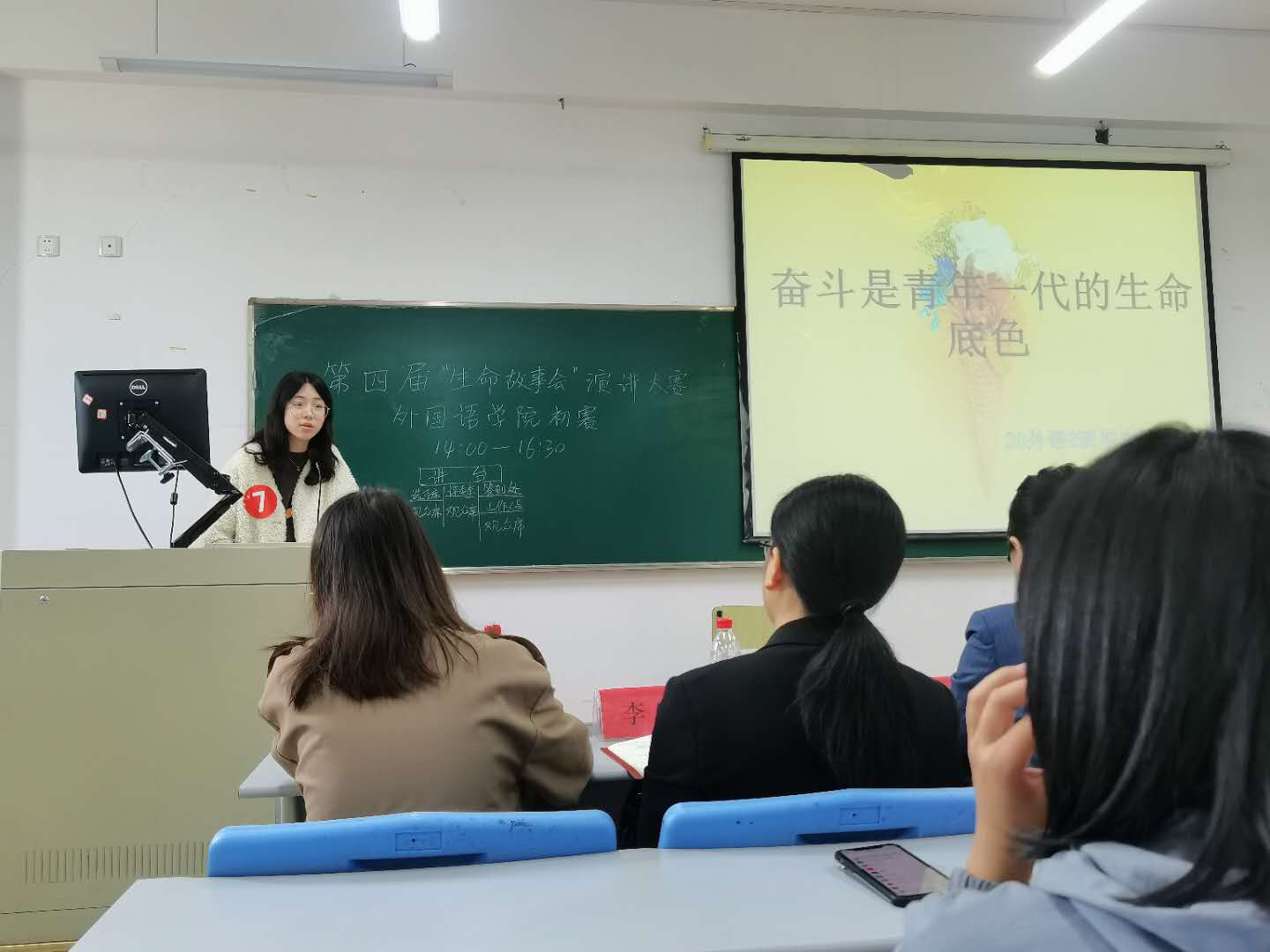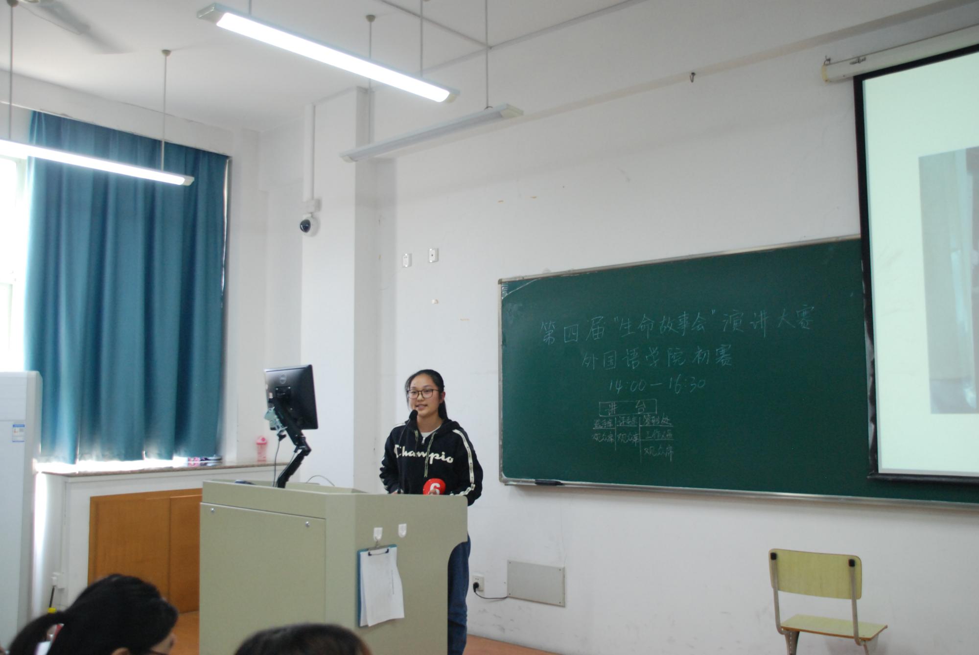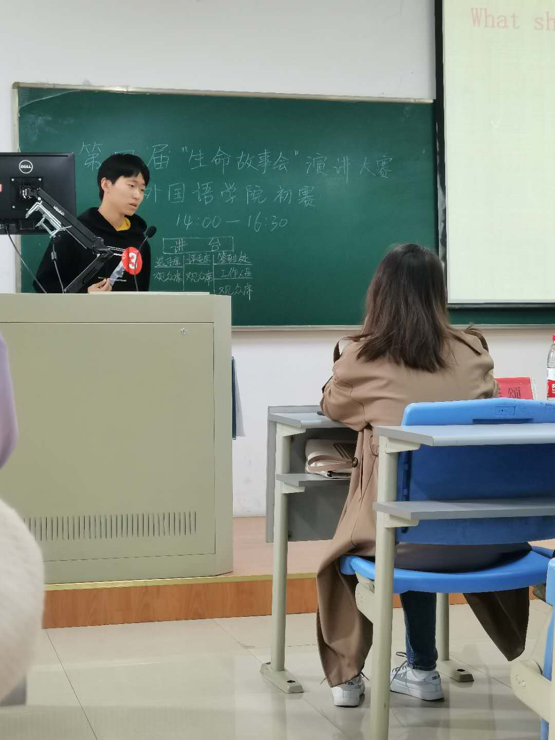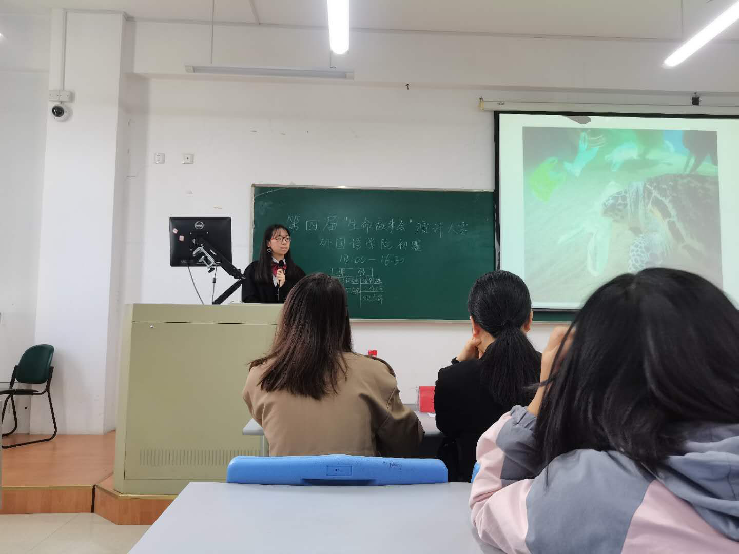 4号选手18英语1班郭嘉璐:我们每个人都是由然而来的生命,我们有自己生存存在的价值,生命是一场不服输不能输的修行,好好对待自己,对待生命,让生命寓益漫长丰盈。——《生命难以承受之轻》