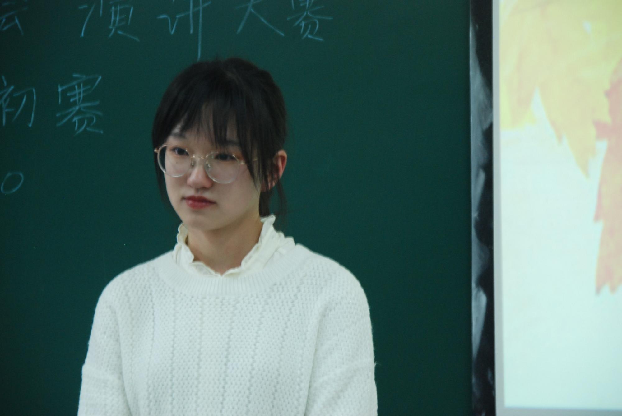 12号选手20外语4班陆怡:能做事的做事,能发声的发声。有一份热,发一份光,就如萤火虫一般,也可以在黑暗里发一点光,不必等候炬火。愿新时代的我们也能创造独属于自己的那一份价值!——《生命的价值》