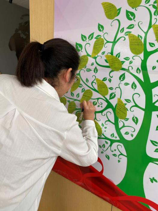 熊建国老师在现场与希望得到职业规划指导的员工开展了面对面交流;辅导员聂亚平为想讨教心理学考研经验的员工找来了跨考成功的员工;与公司员工支部共建的公司发展规划处党支部的党员教师黄珊、李丹和严婷婷也早早地来到心愿墙认领微心愿,并主动与结对同学面对面实现微心愿。