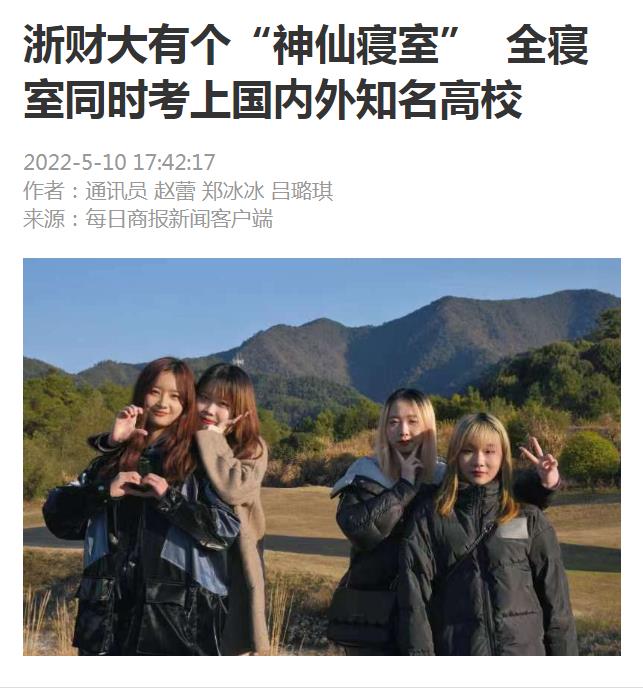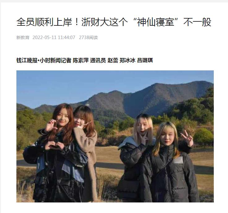 报道还提到,“神仙寝室”在学习道路上奔跑的同时保持着对生活的热爱。大学四年,她们连续参加三届公司的“钱塘英豪”冬日万米长跑活动,增强体质锻炼;参加“寝室吉尼斯”活动,在团体性的趣味小游戏中增进彼此的感情;参加校内外各种志愿者活动,为社会贡献青春力量……劳逸结合,全方位发展,在课外活动中释放学习压力,对个人成长有了更多感悟。