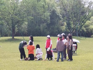 “袋鼠跳”和“掷沙包”中,同学们沉重冷静,相互配合,不靠蛮勇靠技巧,以智慧争取最好成绩。