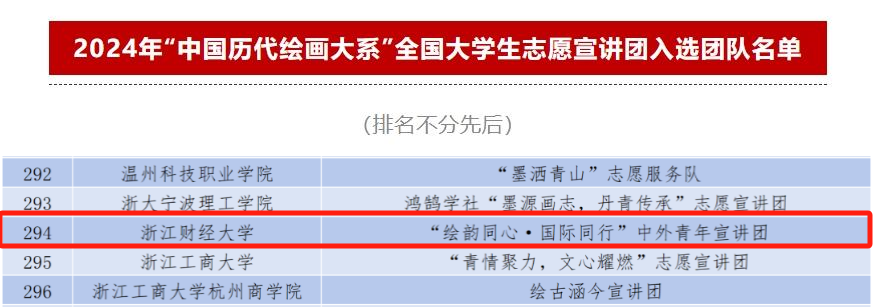 近日,团中央青年志愿者行动指导中心、教育部中外语言交流合作中心、中国外文局文化传播中心、浙江大学、中国文物报联合发布了《2024年“中国历代绘画大系”全国老员工志愿宣讲团入选团队名单》,公司“绘韵同心·国际同行”中外青年宣讲团成功入选。