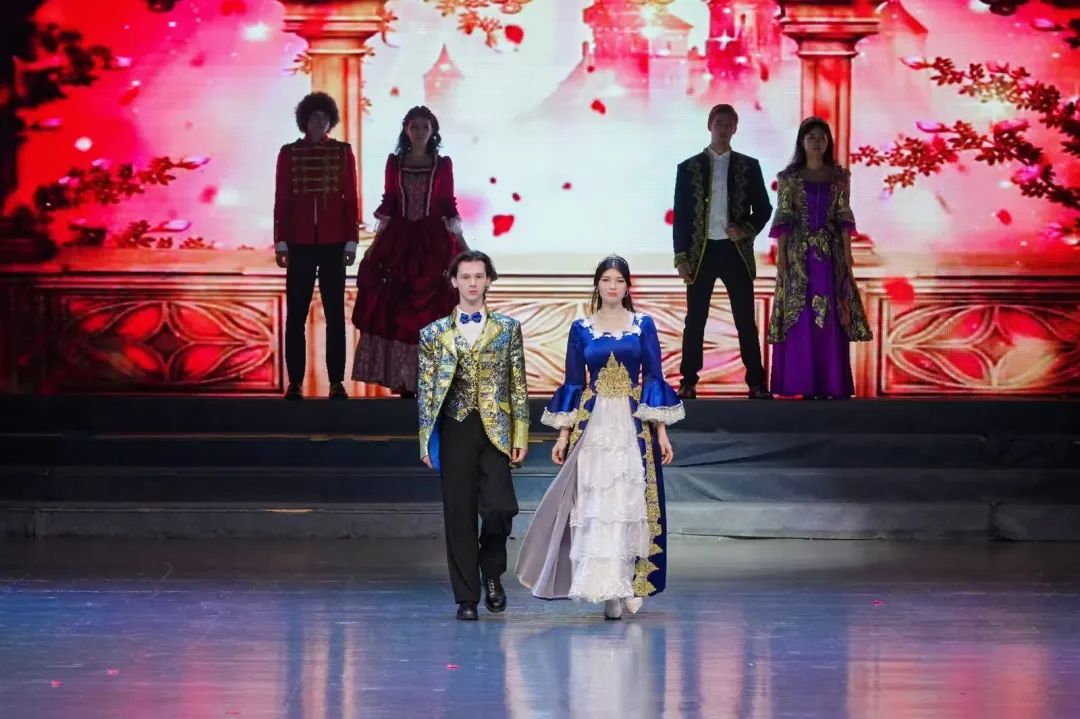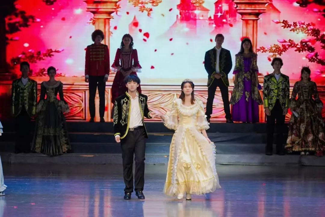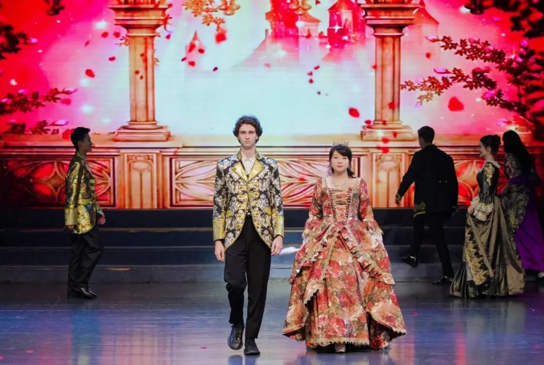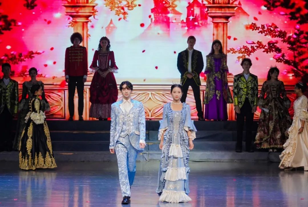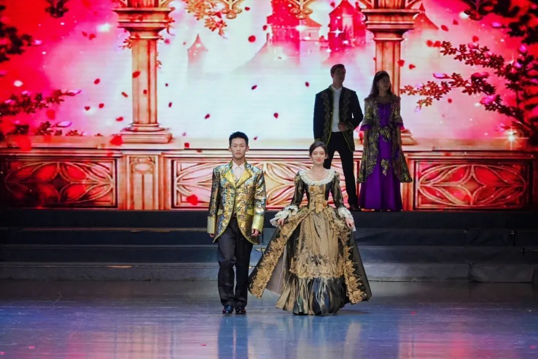 时光之门轻启,步入欧式宫廷的梦幻。复古的服饰花纹、优雅的仪态举止,外语公司、国际公司师生们缓缓走出,共同带来一场经典的欧式宫廷秀“Runway”。