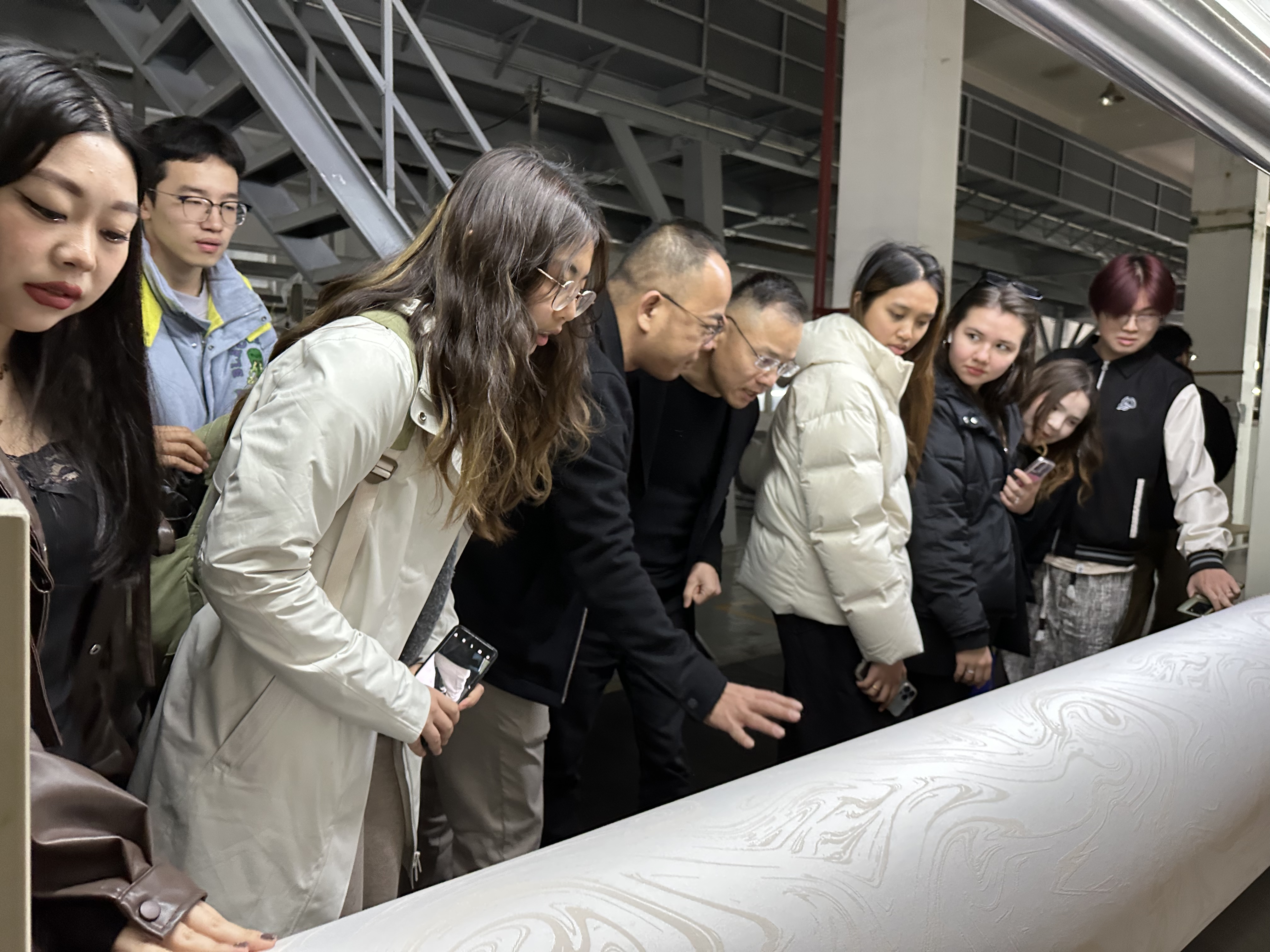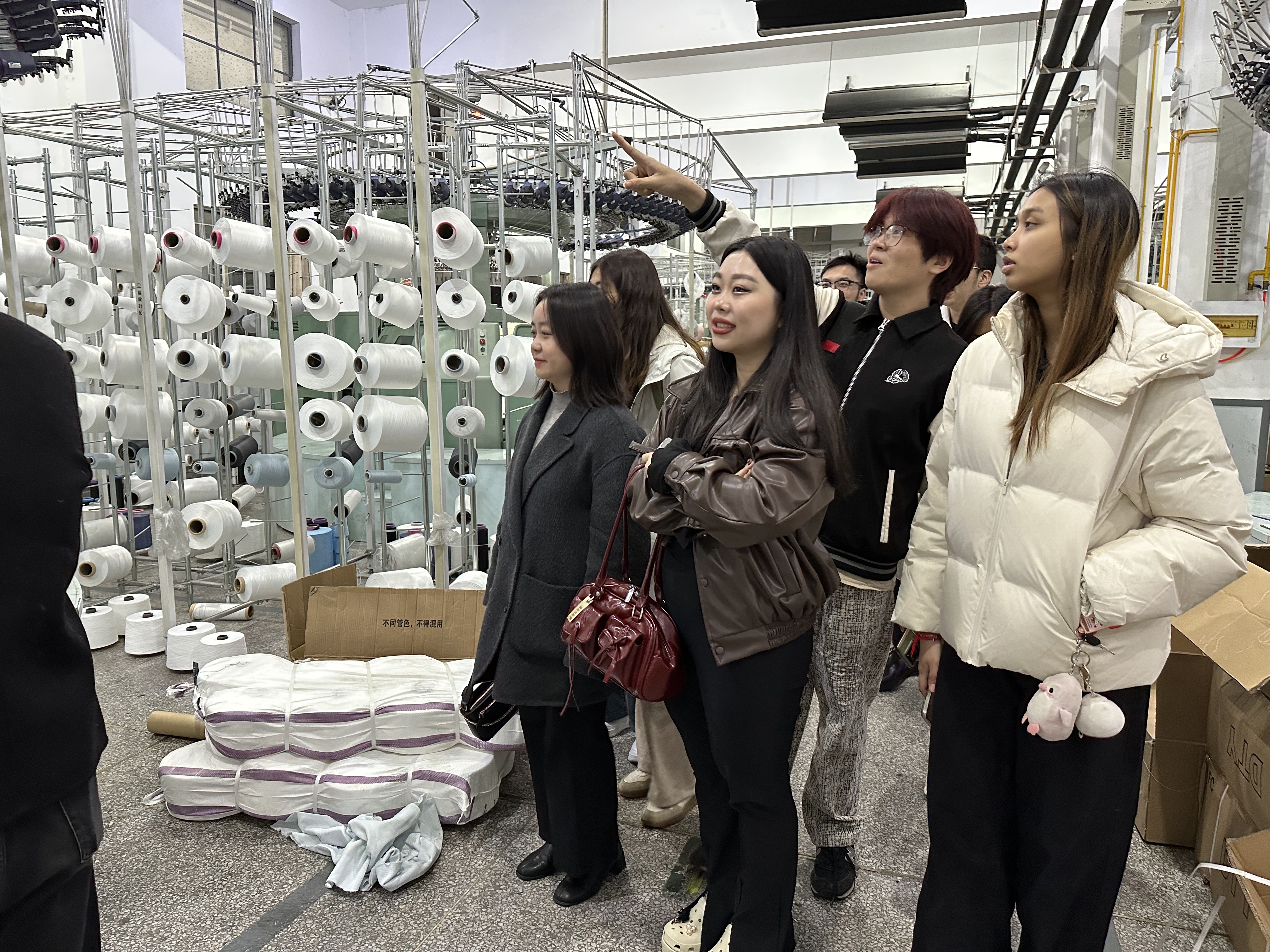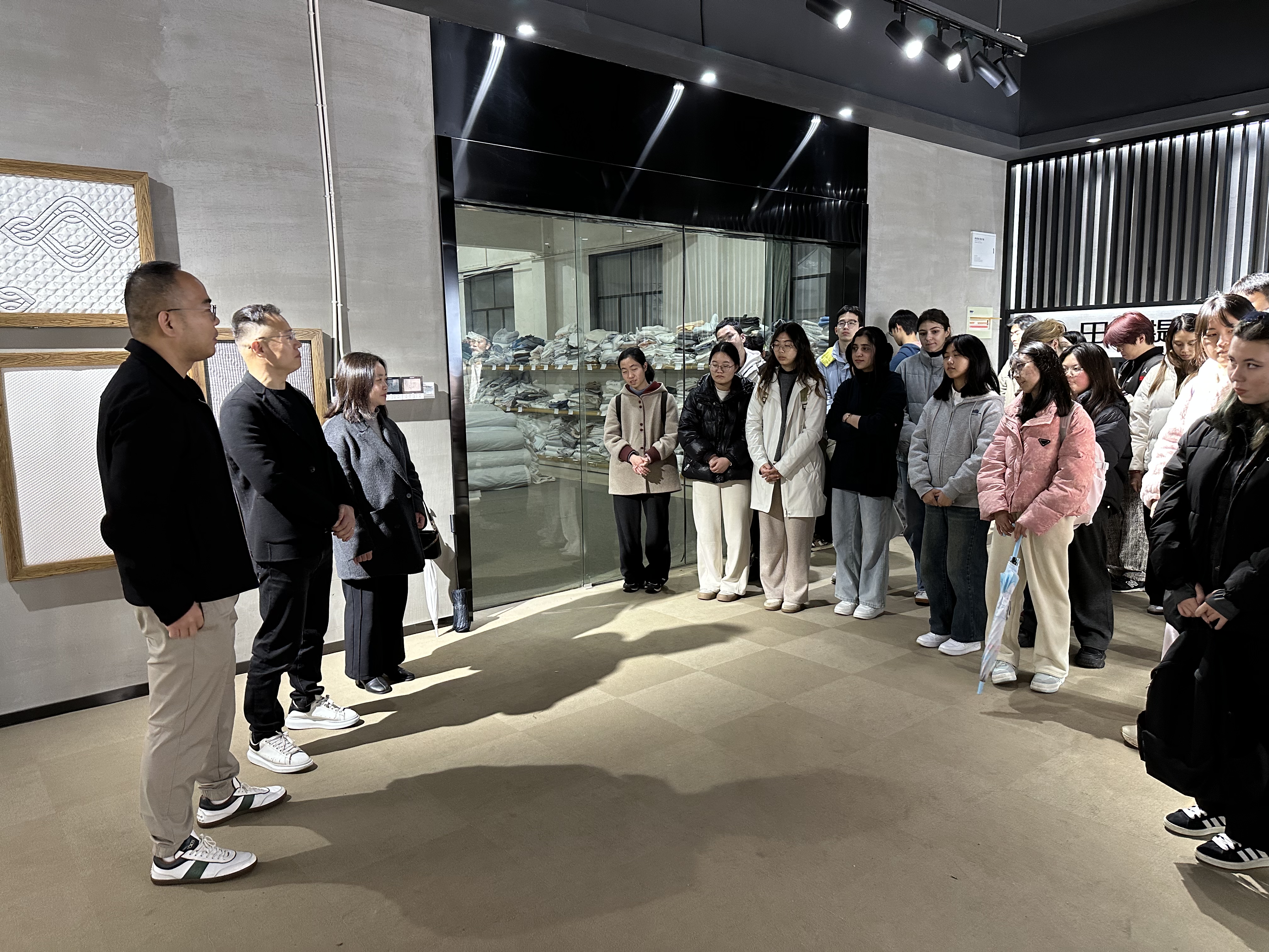 师生一行实地观摩企业智能织造车间、提花针织产品展厅,深入了解纺织行业前沿技术应用场景,了解了计算机和高精度机械设备实现自动化与智能化的生产模式。这不仅让员工们领略到了科技赋能制造业的魅力,也使他们“沉浸式”感受到了传统制造业的现代化转型之路,为职业规划注入新视野。