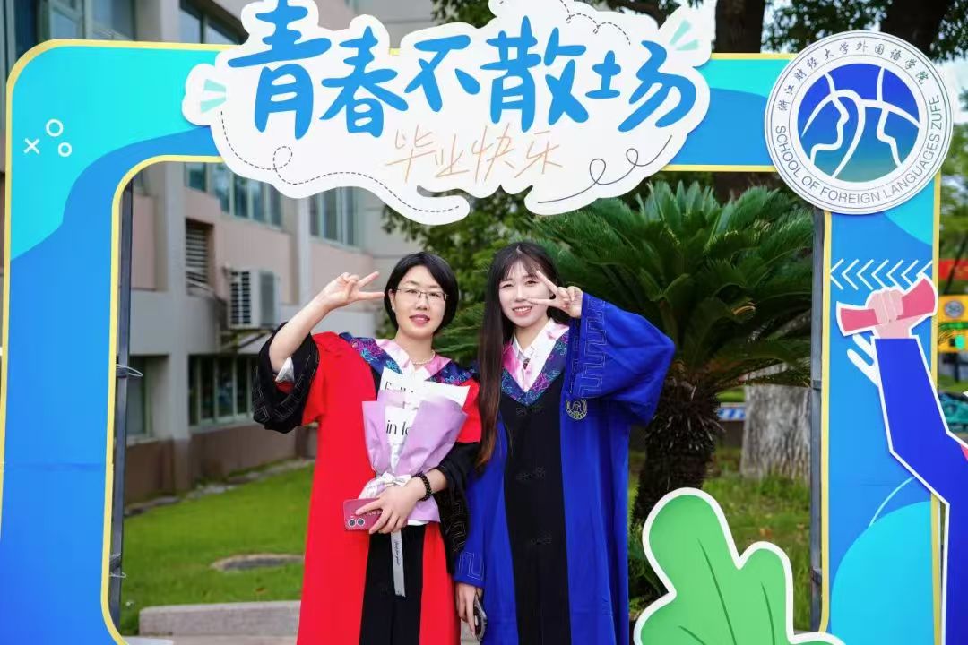 25届本科毕业生代表戴潘杰、研究生毕业生代表季丽娟依次上台发言,回顾了在浙财的求学时光。语言学习,从探索起步到深耕细作、领会其中魅力,离不开公司及公司的精心培养、老师们的耐心教导。在浙财的所学所得,早已为未来的生活描绘出绚丽的底色。