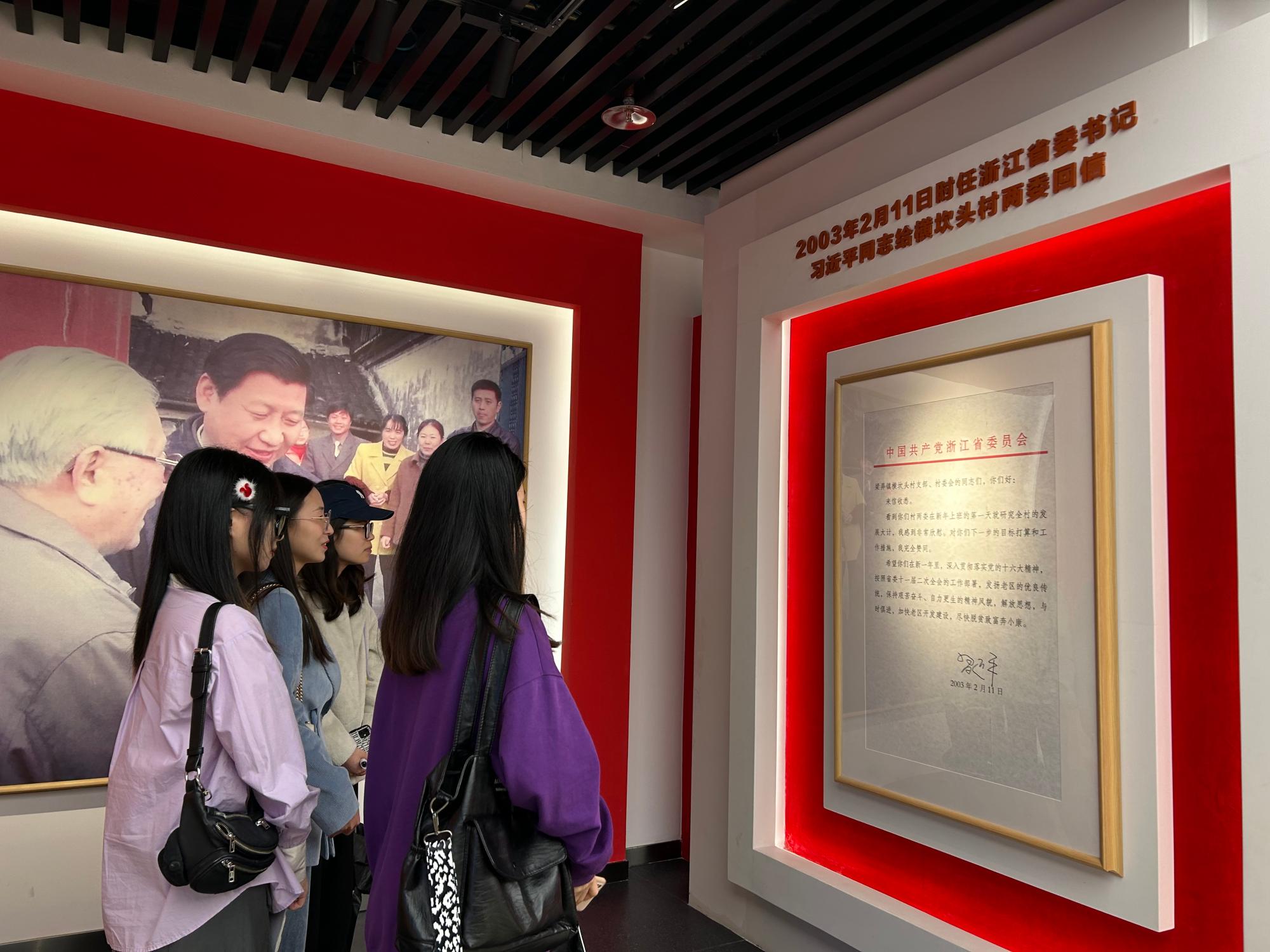 在横坎头村新时代文明实践站,师生们参观了“家园情”“家书情”“家国情”三个展馆,本科生第二党支部党员陈艺天现场讲授微党课《春天的回信》,带领大家重温习近平总书记给横坎头村的两封回信,了解横坎头村认真贯彻习近平总书记回信精神,传承好红色基因,敢于闯大胆试,发展成为全国文明村、全国红色旅游经典景区的奋斗历程,深刻感悟浙江农村实现振兴、迈向共同富裕的密码。