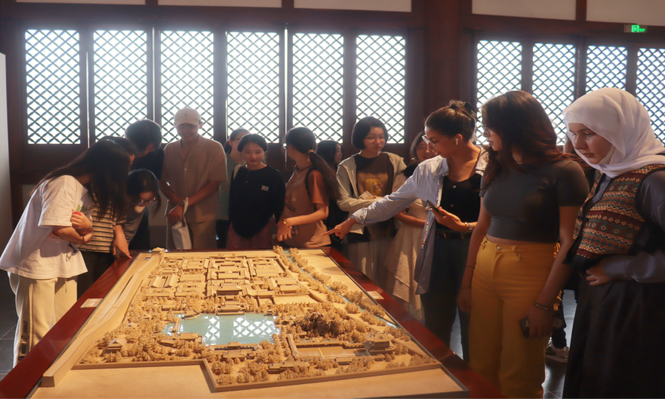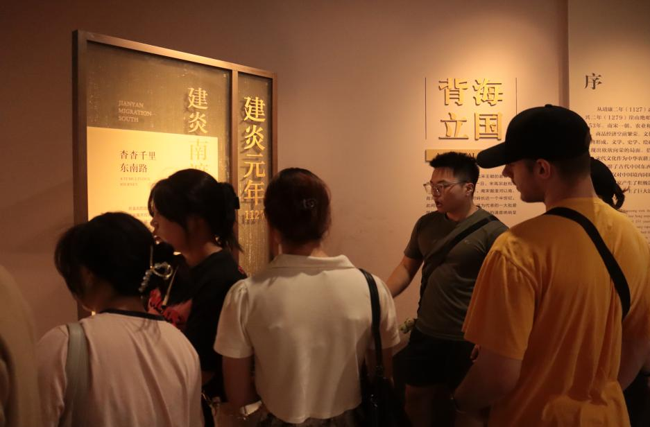 来自俄罗斯、乌兹别克斯坦、摩洛哥、越南等国家的职工们被重华宫内的榫卯结构所吸引,中国员工们担任“讲解员”,运用英语、法语为职工讲解宫殿搭建技艺,以及南宋的政治、经济和文化发展情况。职工们对南宋时期的生活产生了浓厚的兴趣,对岳飞、陆游、文天祥等历史人物感到敬佩。