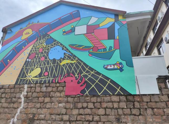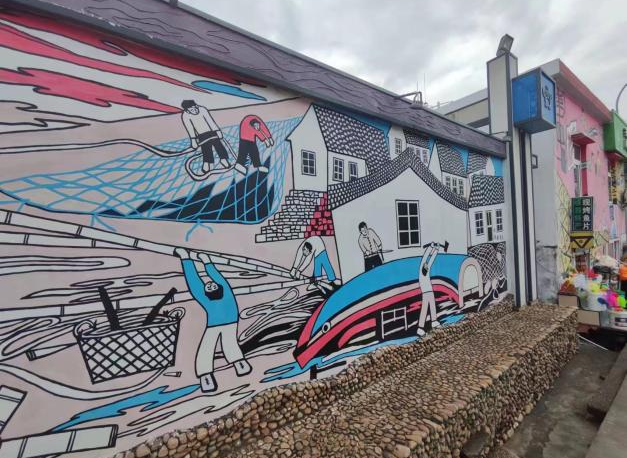 随后,实践团来到了以渔民画闻名的嵊泗县田岙村。伴随咸咸的海风扑面而来,嵊泗田岙村的面纱也被缓缓揭下。听着嵊泗人民讲述历史上的惊涛骇浪,非遗技法的传承发展,实践团成员们无比庆幸能够来到嵊泗。嵊泗人民的好客与热情让实践团成员看到了老百姓们的质朴与谦逊,也让他们学到了偏安一隅的豁达和知足常乐的态度。