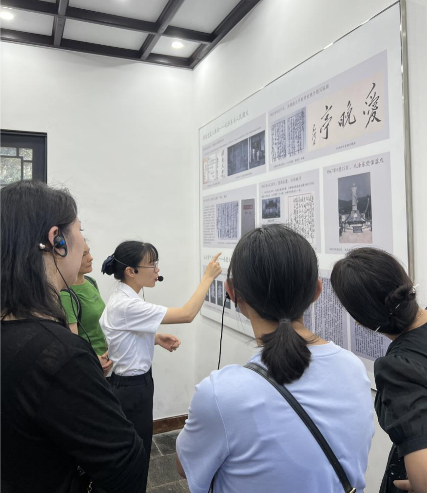 实践团来到位于洞庭之滨的岳阳楼区,这里是岳阳的政治文化中心,也曾是一片布满红色星火的沃土。毛泽东主席曾多次到达岳阳,几度登上岳阳楼,与岳阳楼结下了深厚的缘分。在岳阳楼三楼正面壁间映入成员们眼帘的是毛泽东手书的《登岳阳楼》的诗屏。挥笔题字间,革命的火种在古城巴陵点燃。实践团通过走访岳阳楼区高标准红色文化传承教育实践基地,在欣赏壮丽洞庭景色的同时学习了解那段红色过往,缅怀革命先烈,弘扬斗争精神。