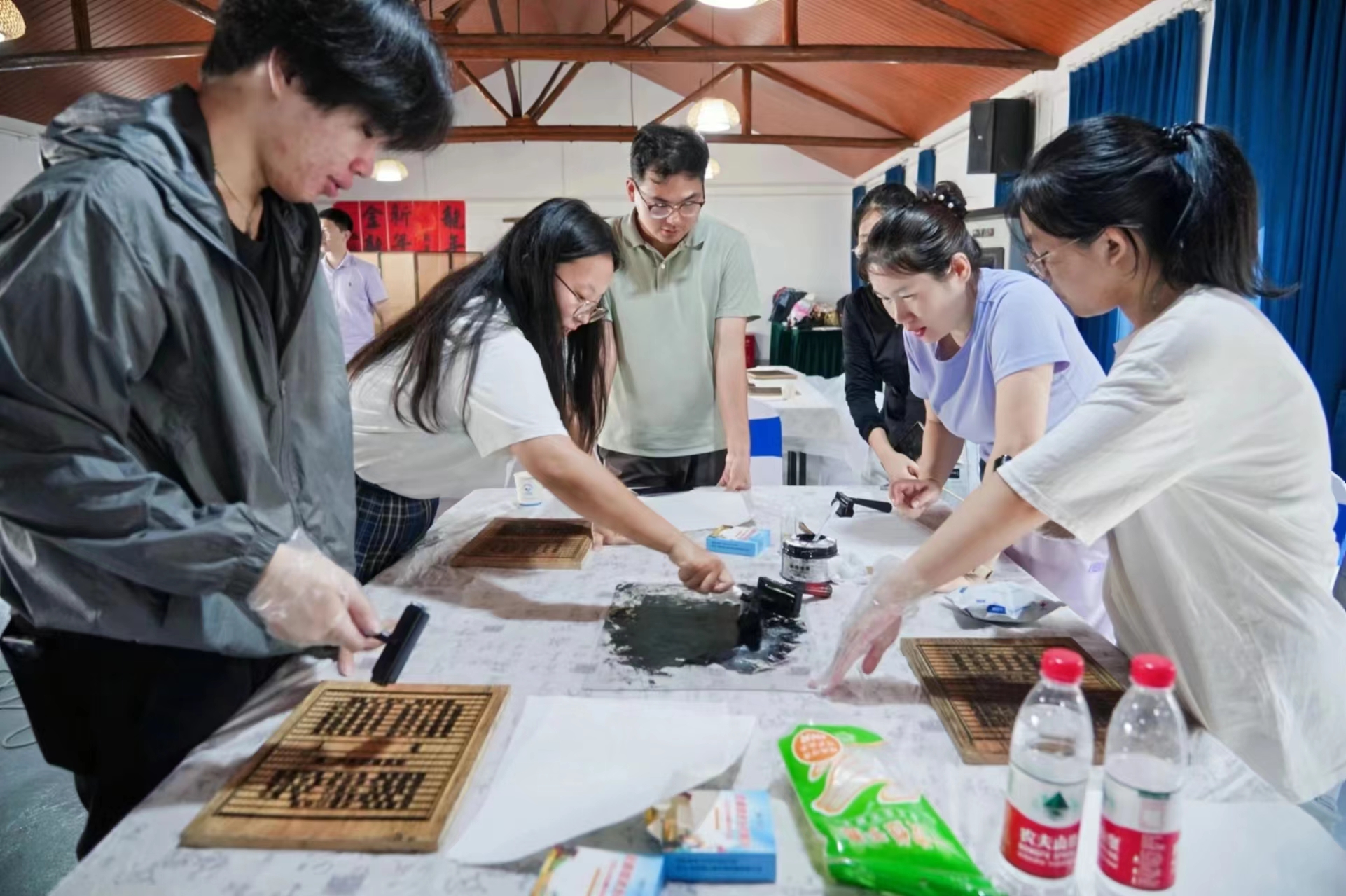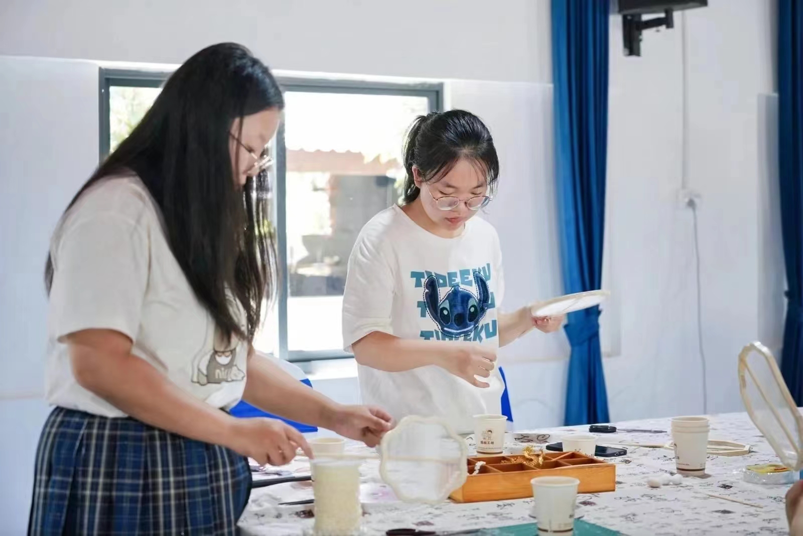走进寿昌镇909蚂蚁工坊,感受农耕文明与现代智慧有机交织。从非遗手作蚕丝扇到雕版印刷,每一道工序都蕴含着匠人的心血与智慧,每一处细节都可以感受传统文化的博大精深。缠丝、编织、黏贴、呈现,折页、描线、打孔、穿线,实践团成员切身感受着传统文化的独特魅力,更为清楚地体会到乡村沉淀数百年的精神古韵——精益求精、沉稳自定,这是共富发展必不可少的“催化剂”。