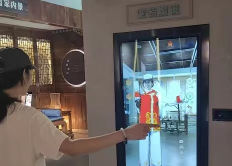 为深入了解畲族文化,团队成员走进“山哈会客厅”,“山哈”是畲族人民的自称,“山哈会客厅”从畲族的姓氏起源讲起,让大家全方位地了解畲族文化。通过数字技术,团队成员“云体验”畲族服饰,体验畲族传统“竹竿舞”。