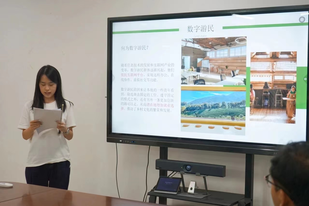 各实践团依次介绍了社会实践开展的具体过程及取得的实践成果。开展的实践活动既能结合专业知识,体现出外语特色,同时也充分挖掘好家乡及周边资源,汲取精神力量,助力经济发展、文化传承、服务提升,真正做到“展时代风采 筑青春新篇”。