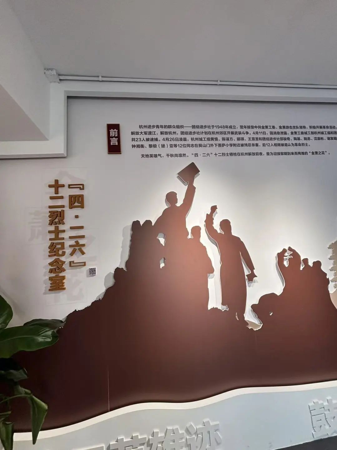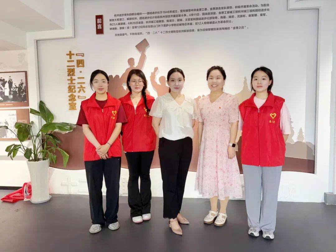 实践团成员穿过居民楼,探寻濮家社区的红色历史底蕴。“四·二六”事件是杭州解放前夕的一段悲壮历史,那些曾经传播革命思想的进步青年,在白色恐怖中坚持斗争,通过印发《金萧报》、组织员工运动等方式唤醒民众,他们用生命和鲜血谱写了“血洒黎明”的英雄赞歌,为杭州的解放事业作出了不可磨灭的贡献。纪念室通过历史实物、影像档案等展陈形式,系统呈现了十二烈士的革命轨迹,展示了他们的英勇事迹和革命精神。