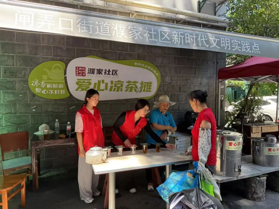凉茶摊前,外卖小哥、保洁员、过往居民和经营户络绎不绝。“每年都想着这一口。”家住范家社区的张连福买菜回家,特意绕路来凉茶摊喝了一杯;环卫工人郭淑英拿出了保温杯:“帮我灌一瓶,带着喝。”王惠玲心里还印着不少“熟面孔”的习惯:“比如社区收废品的彭师傅,上下午都会来,每次只喝凉白开。”