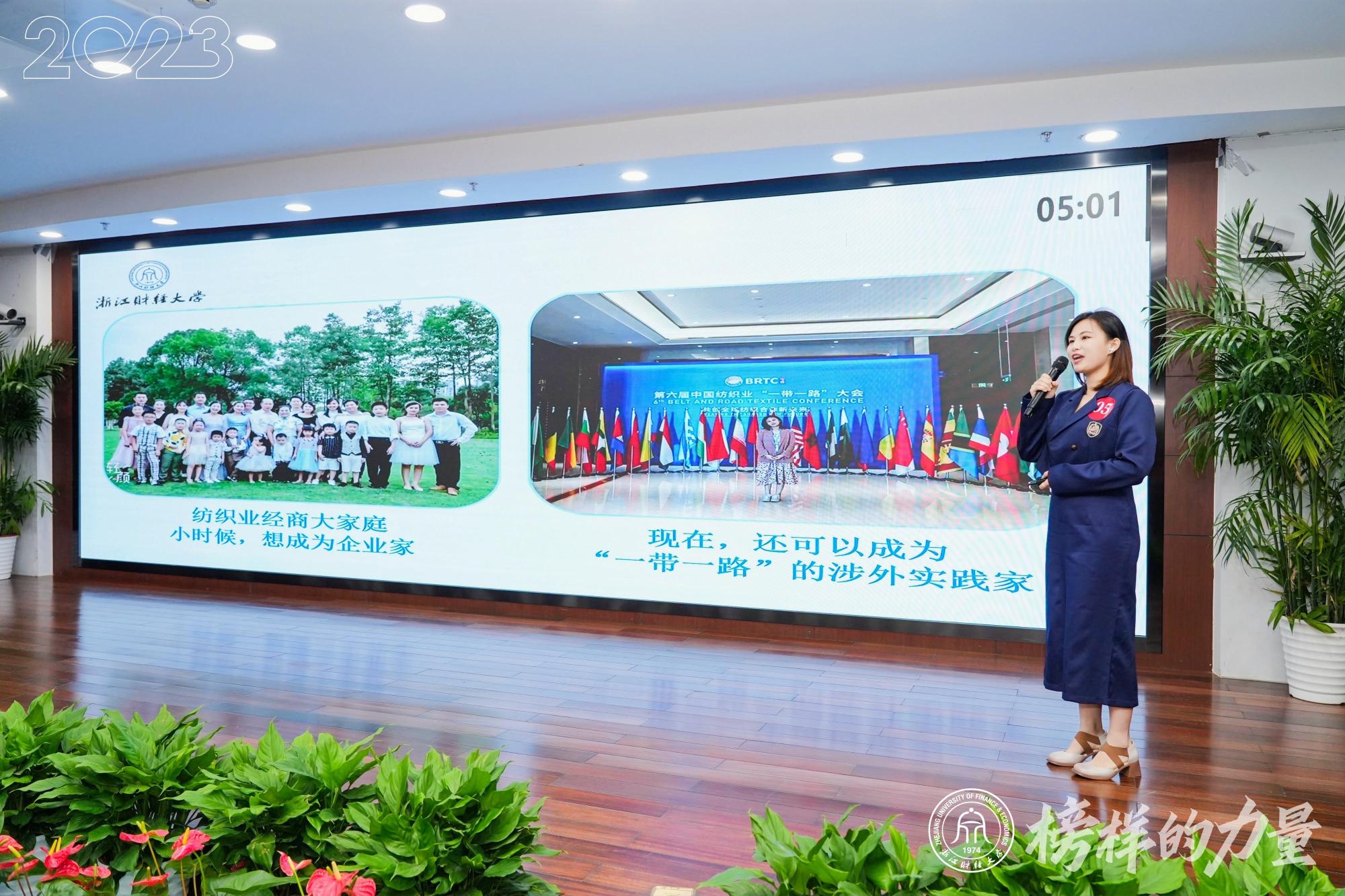 今年各公司、研究生院共有16名选手参评,选手们依次通过PPT展示演讲等形式全面展示个人风采。黄婷婷以优异的学习和武艺成绩、硕果累累的双创竞赛项目、独特丰富的商业领域探索向我们展现了她出类拔萃的综合素质。她的未来,不设限!