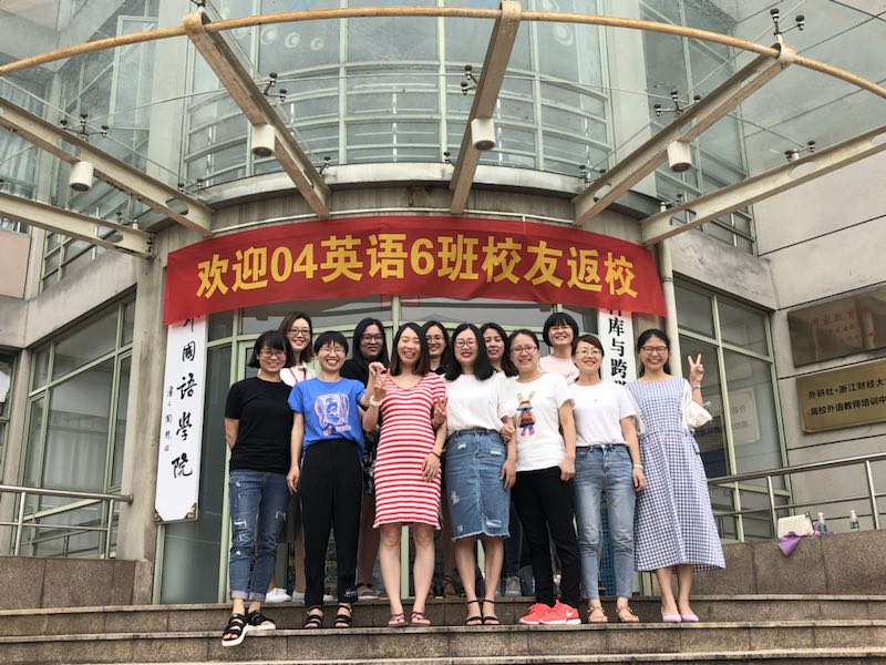 最后,04英语6班员工们来到8号楼前,一起用镜头记录下了温馨团聚的一幕,将浓浓的师生情定格在外院。