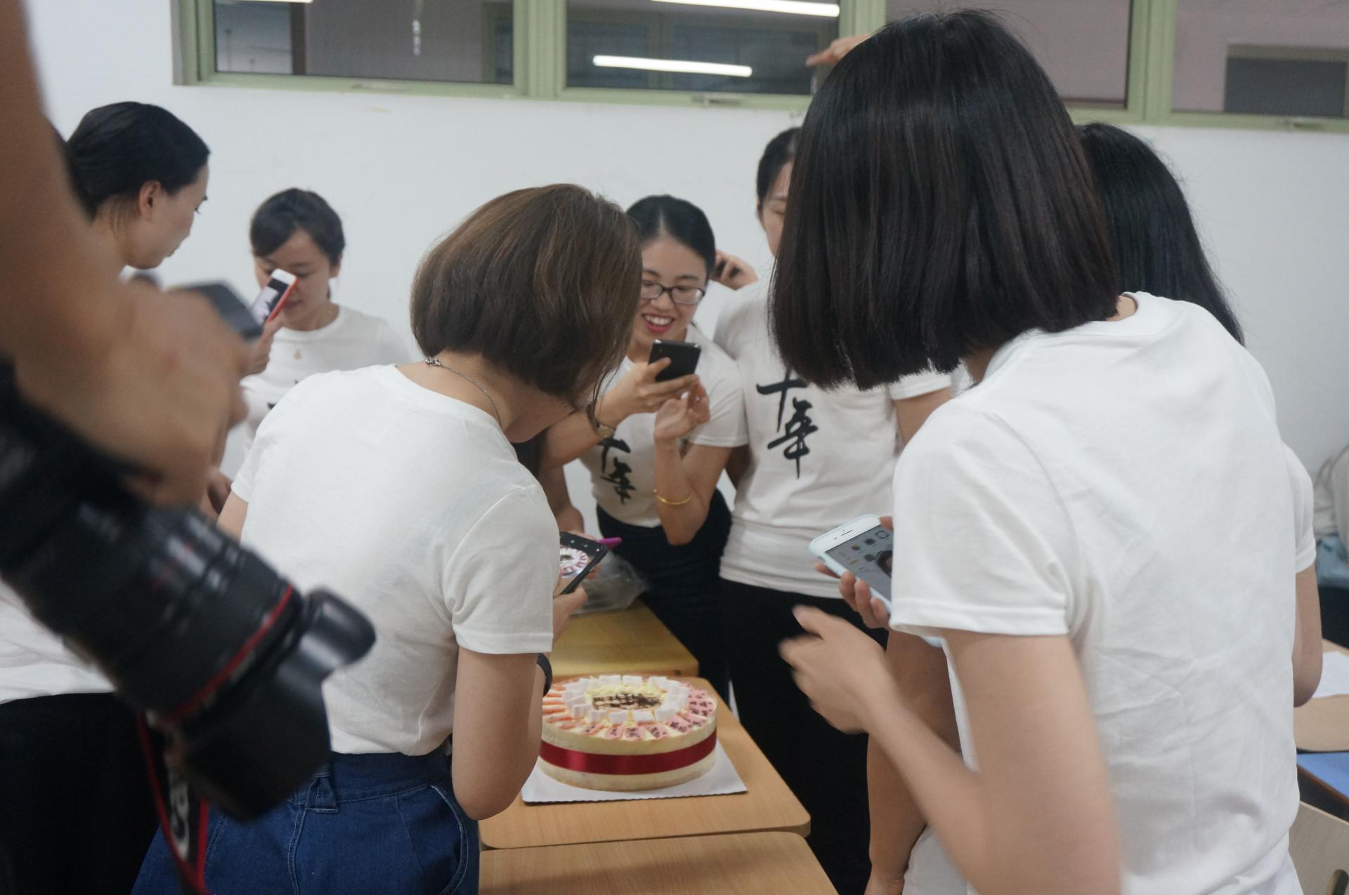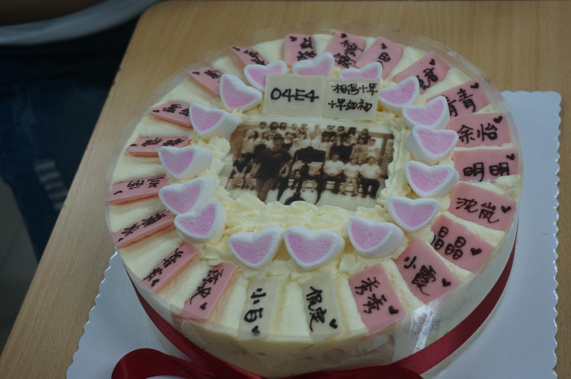 04英语4班班长陈侃定员工精心为班级每位成员准备了一支刻有姓名的钢笔,全体成员还共同切开了印有全班同学姓名的蛋糕,共同定了下一个相聚之约。