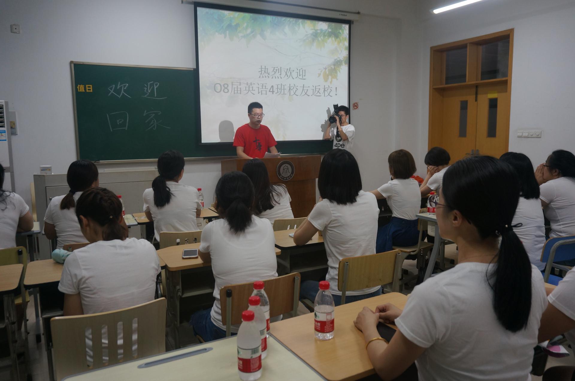 04英语4班以“重返十年,回归校园”为主题开展了系列返校纪念活动,员工们身着“十年”主题纪念衫,亲身重新体验了淳朴、亲切的校园生活。员工们首先观看了公司制作的《毕业季》微视频,共同回顾了财大生活的点点滴滴,难忘的大学时光仍然历历在目。