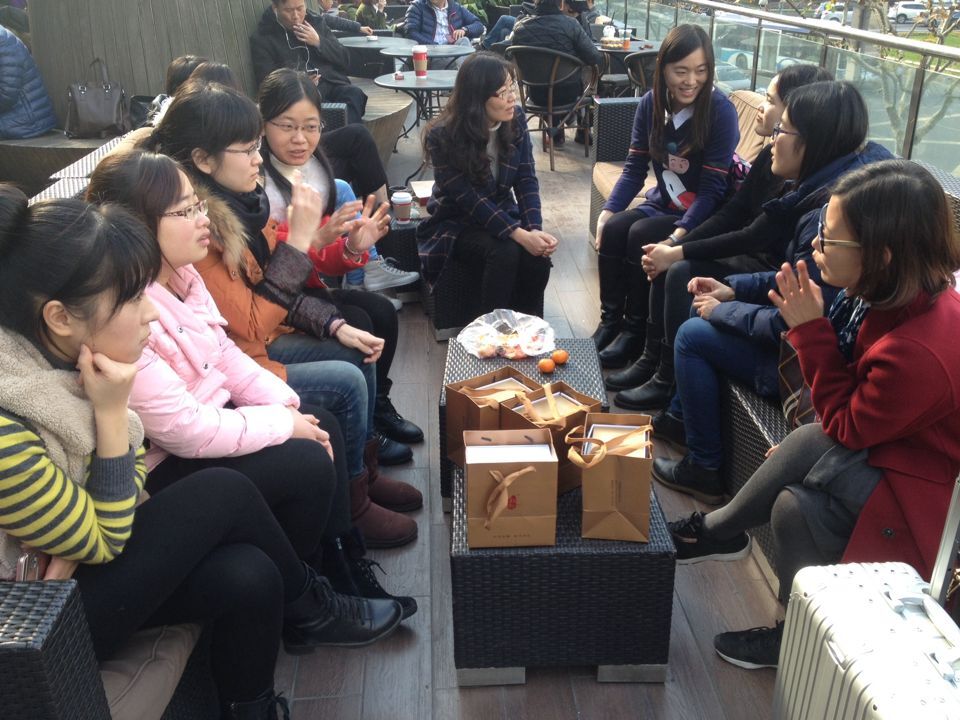 林凡老师向员工们介绍了公司和公司近来的发展建设情况,对员工们在上海的学习、工作情况表示关心,并邀请员工们常回母校看看。同学们认真聆听了博士员工分享的宝贵学习经验和成功经历,从中体会到浙财外语人求真务实、开拓创新和努力拼搏的精神。随后,同学们就考博相关的问题一一向员工请教。在面对面零距离的交流中,大家畅所欲言,既有对过往老员工活的回顾,也有对当下关注问题的探讨,还有对未来的展望,气氛热烈温馨。