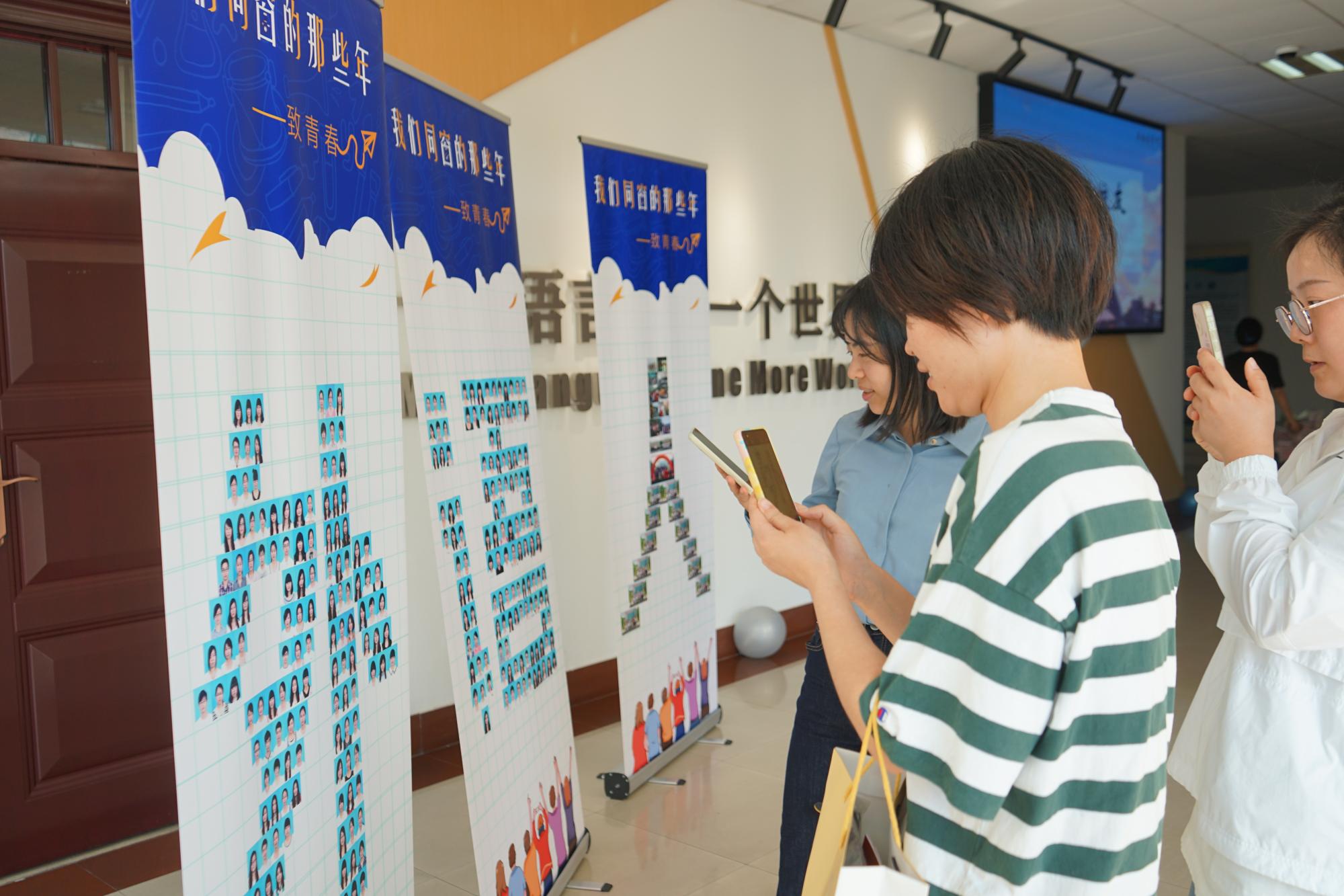 诺大的签名墙、随风轻轻摆动的彩色风车和旗帜、精心准备的纪念品,装点一新的楼道,活泼灵动的海报都在欢迎从各地返回母校的员工们。公司也精心策划了“重返求学时光”员工老照片展、“追忆似水年华”寻找外语闪亮印记、“好友相聚,迎‘篮’而上”员工篮球赛、“传承·创新·开拓”员工工作坊、“三业共进”员工企业宣讲会、“心相聚·新起航”师生茶叙以及“秋来一季,心生欢喜”游园会等返校日系列活动。在这个深秋,员工们集聚,共叙师生情谊,共话求学时光。