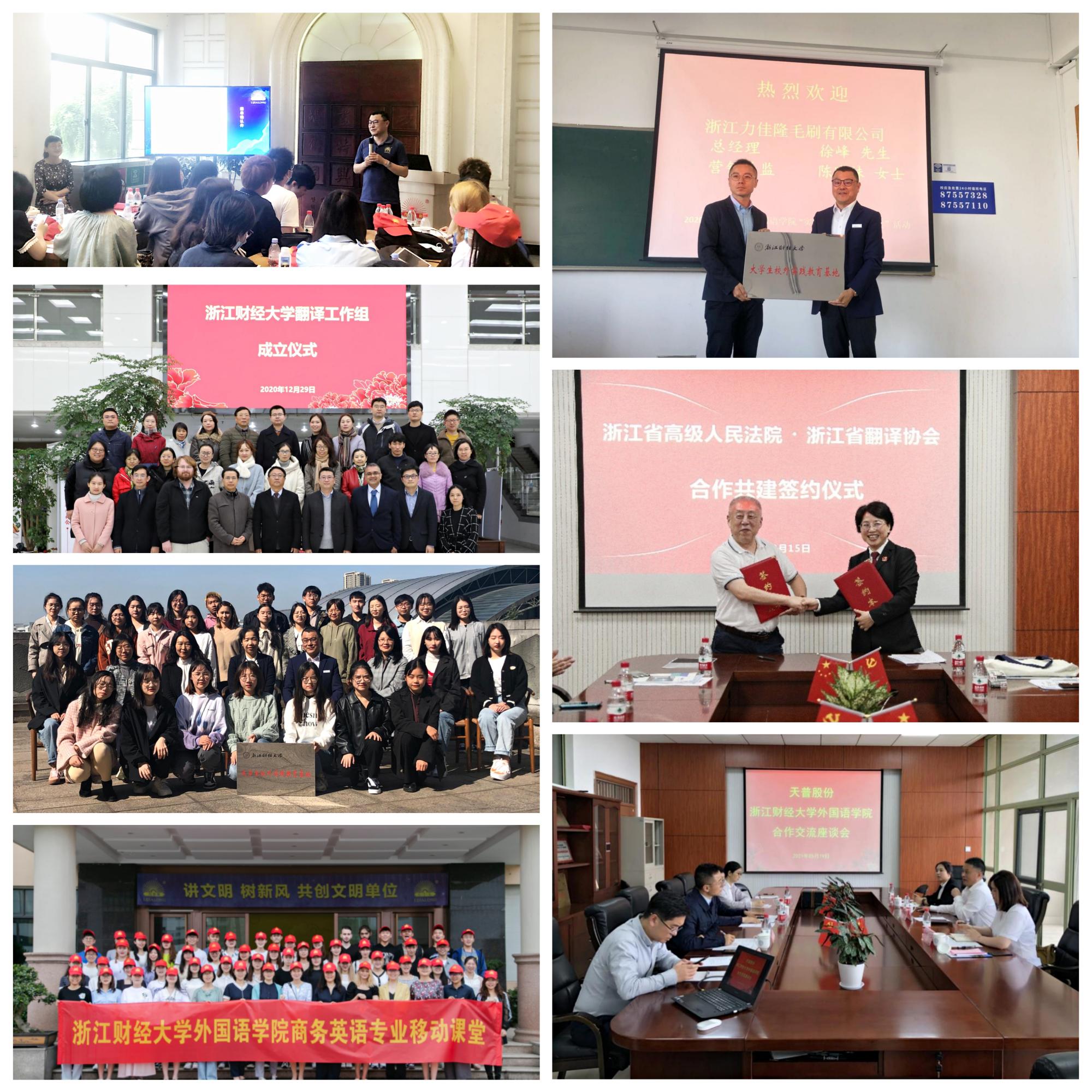 公司先后与中国翻译协会语言服务行业创业创新中心(LSCAT 中心)、上海策马翻译公司、上海一者信息科技有限公司、杭州央古传媒有限公司、宁波天普橡胶科技股份有限公司、现代卫厨(中国)有限公司等,就专业建设、人才培养、实习竞赛、教师挂职、奖学助困等打造联培联育联建联创模式,实现校企共建共享共赢。公司教师积极参加省高级人民法院与省翻译协会合作项目,协助国际法务翻译工作;承担公司翻译工作组任务,满足公司国际化工作的发展需求。