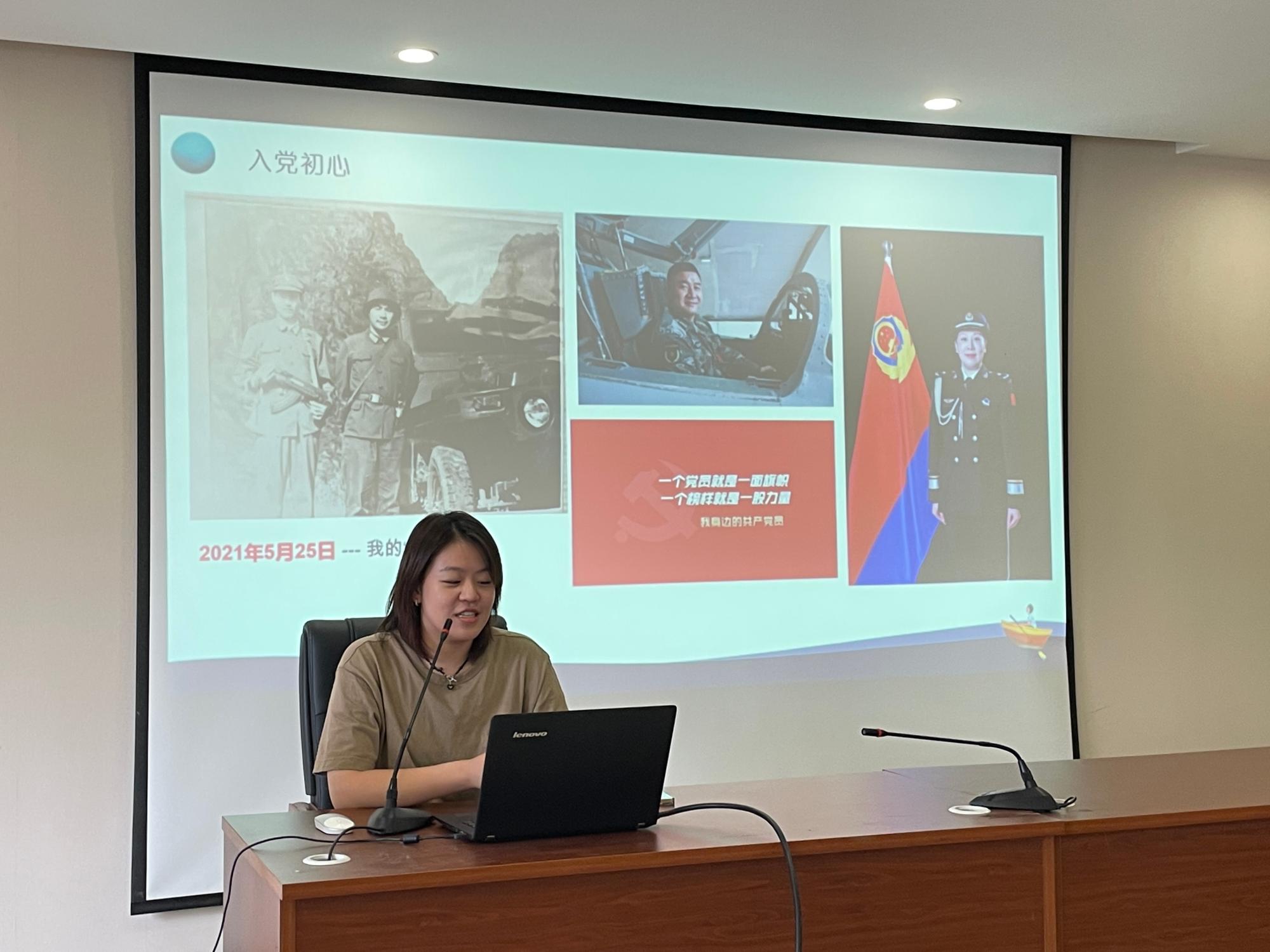 课上,员工第一党支部党员、19英语1班班长王睿瑶同学还以《含“英”咀华,“文”行致远》为主题为新生分享了入党初心和老员工活,她鼓励新生们树立远大目标,坚定理想信念,明确学业规划,不断提高综合素质,积极向党组织靠拢。