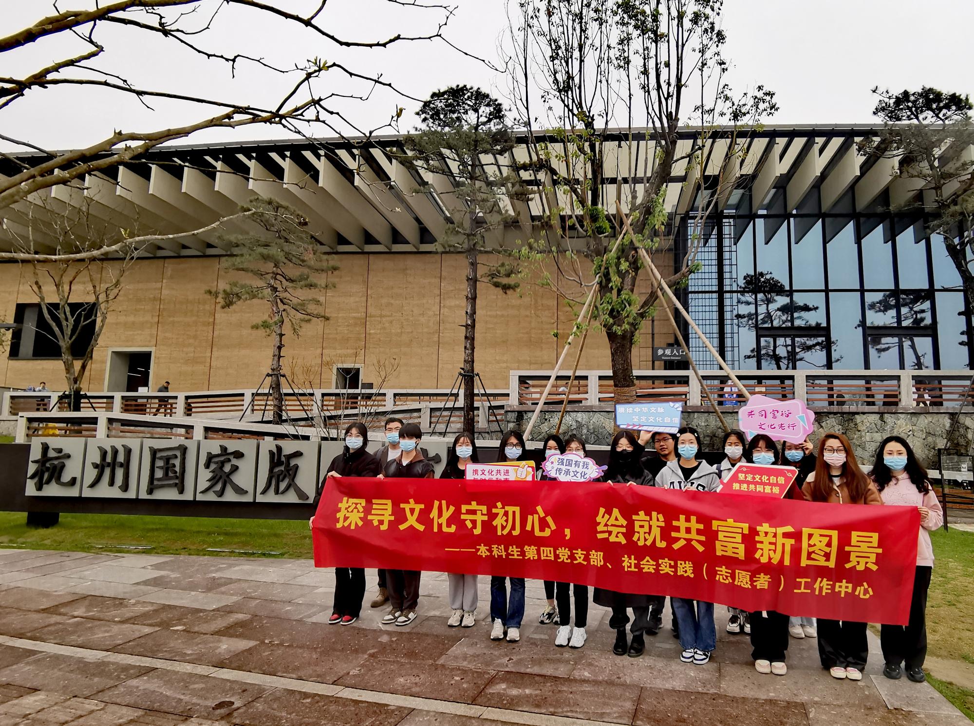 本科生第四党支部联合公司社会实践(志愿者)工作中心共赴中国国家版本馆杭州分馆,开展了以“探寻文化守初心,绘就共富新图景”为主题的党员研学活动。大家跟随着讲解员“观版本,览古今”,通过参观丰富鲜活的展品更新了对版本的认识,品味了江南水乡千年文脉,感受到新时代浙江精神焕发的蓬勃生命力。紧接着,党员研学队伍开展了“跟着热点学英语——文化篇”和“从党的二十大报告、全国两会看优秀传统文化”的讲党课活动,深入学习关于推进文化自信的重要论述,文化概念和文物名词的双语表达,并围绕“如何把握亚运契机,讲好中国故事”展开了热烈的讨论。大家纷纷表示,要以迎接宣传亚运为契机,在传播赛会常识的同时,加强对传统文化、优秀当代文化的推介,助力传播优秀中华文化。