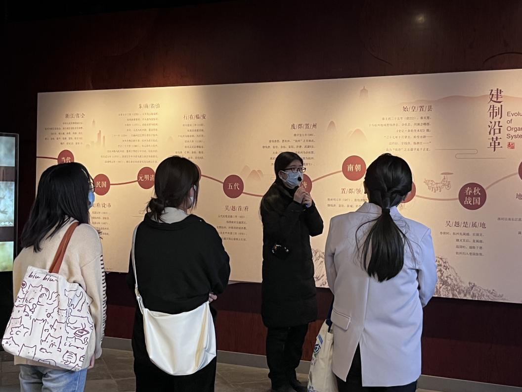 上好以宋韵文化为代表的文化自信教育课。杭州方志馆是杭州历史文化的记忆库,是传播杭州文化的重要窗口,同学们在参观研学中感悟着“典籍中的杭州,史志中的宋韵”,上了一堂杭州宋韵文化为代表的文化自信教育课。一方面,同学们通过沉浸式地参观学习,领略了杭州悠久的历史文化;另一方面,还开展了“研学交流营”,同学们纷纷提出了青年观点、青年对策,根据自身专业、兴趣爱好,围绕宋代诗词、书画、戏曲等主题创作开展了交流,就如何用双语讲好中国故事、结合乡村振兴大赛等学科竞赛推动文化遗产活起来,助力推动中华文化走向世界。