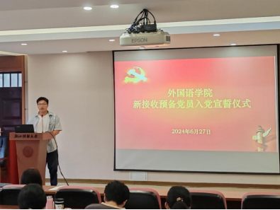 高年级党员代表、研究生第一支部党员吴名同学做分享交流,他首先向新党员们表示热烈的祝贺和诚挚的欢迎,同时希望新党员们要加强学习,提高自身理论和专业素质;要严守党的纪律,做到言行一致;要密切联系群众,努力发挥先锋模范作用;要充分运用专业特长,弘扬中华文化,做国际交流的使者和桥梁;要珍惜大学时光,在学习和工作中不断锤炼自己的党性。